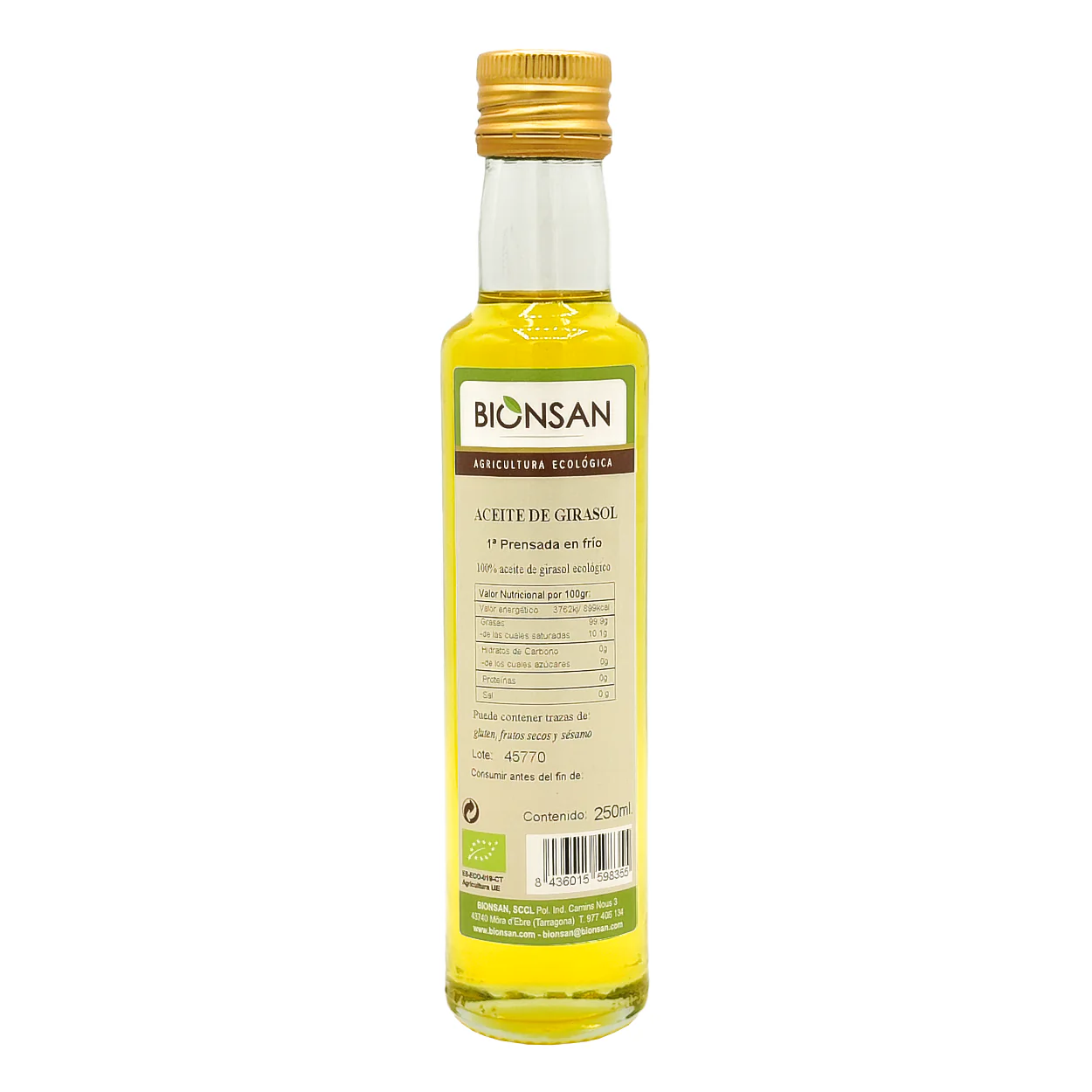 Aceite de Girasol Ecológico de Primera Prensada en Frío