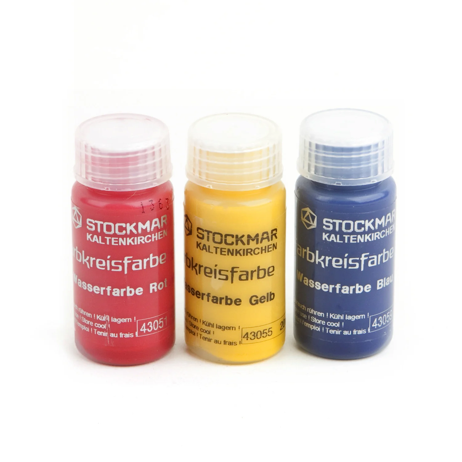 Set de 3 frascos de 20 ml con los colores primarios de acuarela.
