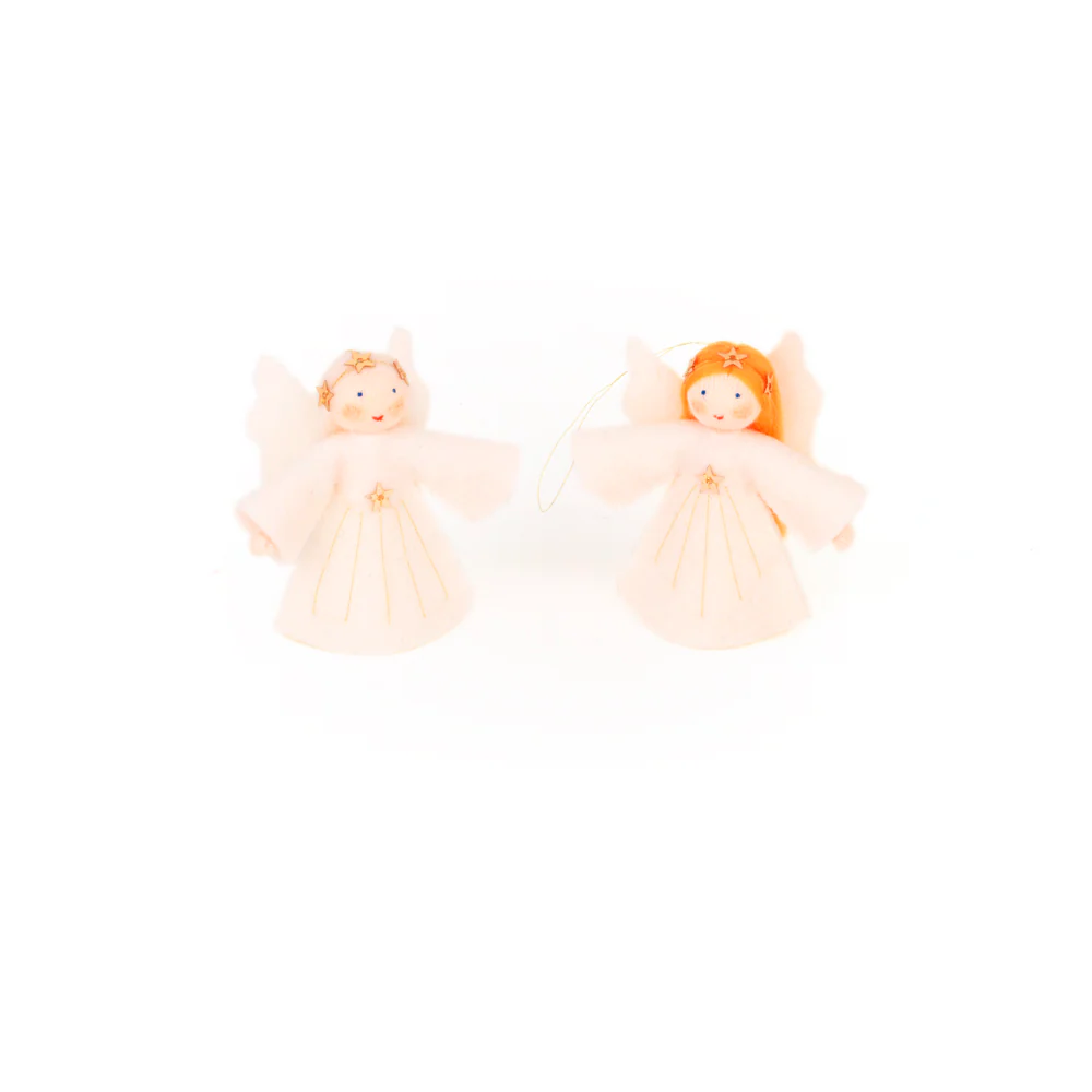 Tierno angelito de fieltro para colgar. Con estrellitas , campanita y todo lujo de detalles. Están realizados artesanalmente con materiales naturales.