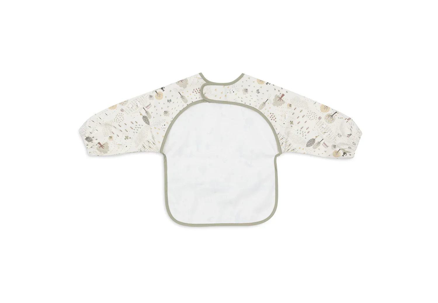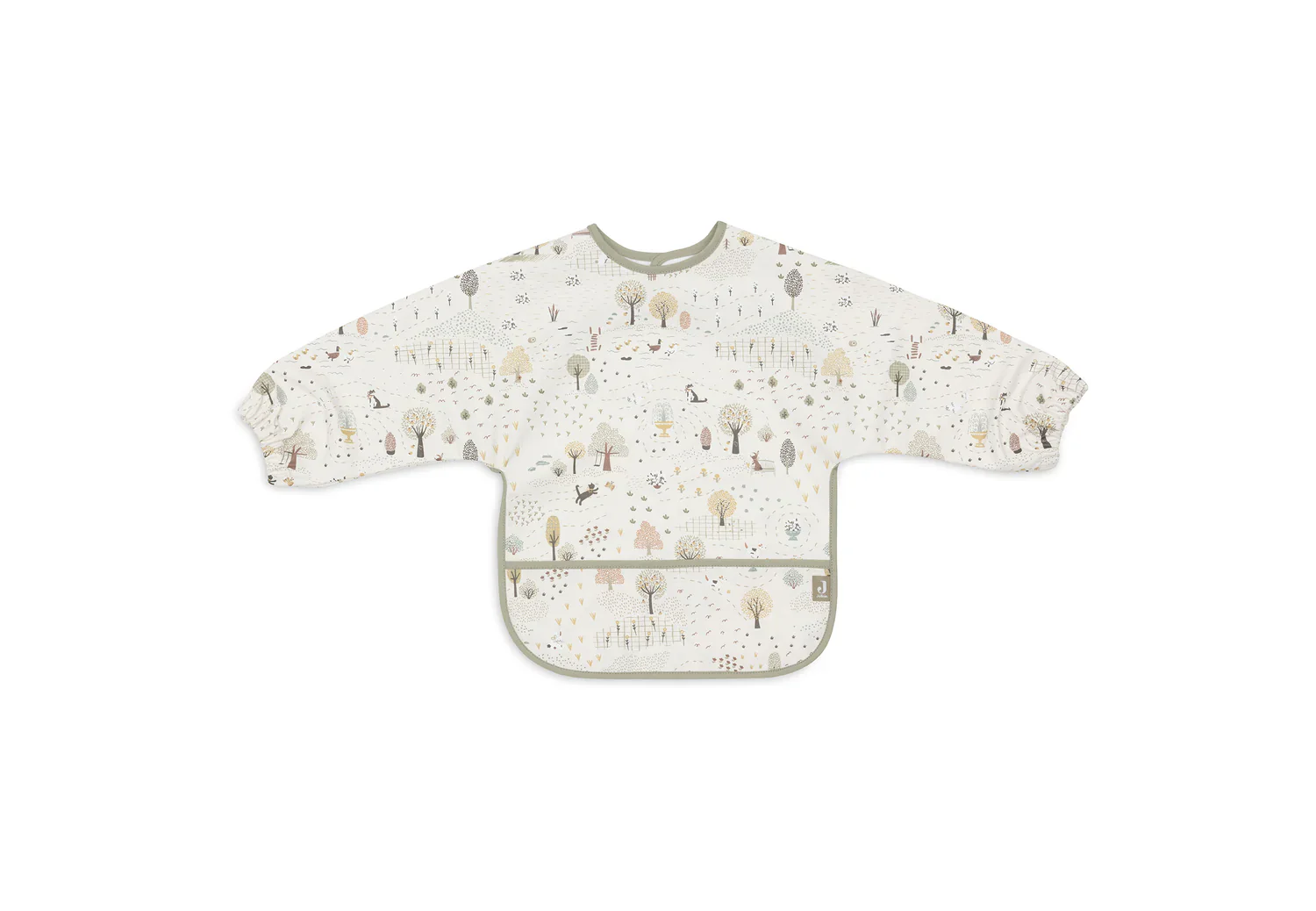 Las mangas largas ofrecen protección adicional contra derrames y salpicaduras, mientras que su suave tejido interior garantiza confort incluso en los días más ajetreados. El adorable estampado Tiny Park, con árboles, patos y simpáticos animales, añade un toque alegre y divertido a cada comida.
