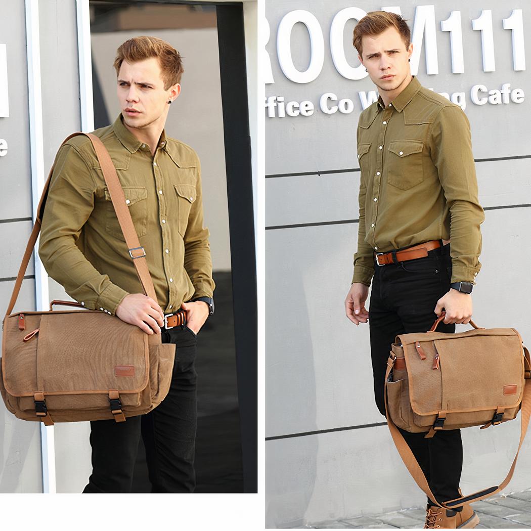 Esta clásica y elegante bandolera vintage para portátil es perfecta para el hombre de negocios moderno que se desplaza. Tiene un interior espacioso con mucho espacio para guardar su portátil y otros objetos esenciales.