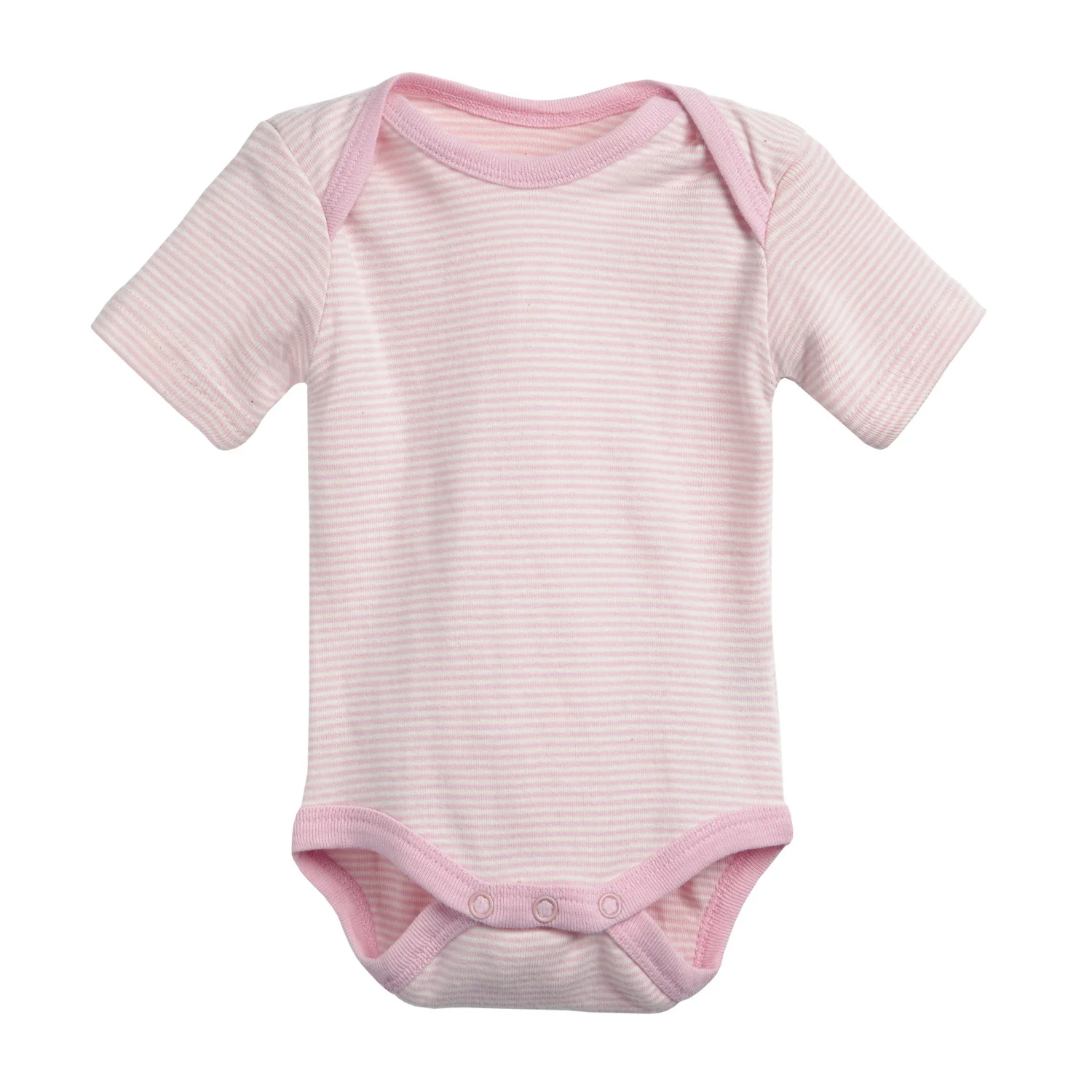 Body de manga corta de suave y agradable algodón orgánico en color rosa a rayas. Se ata con corchetes y se abre por la zona del pañal. Extraordinaria calidad para las delicadas pieles de los más pequeños.