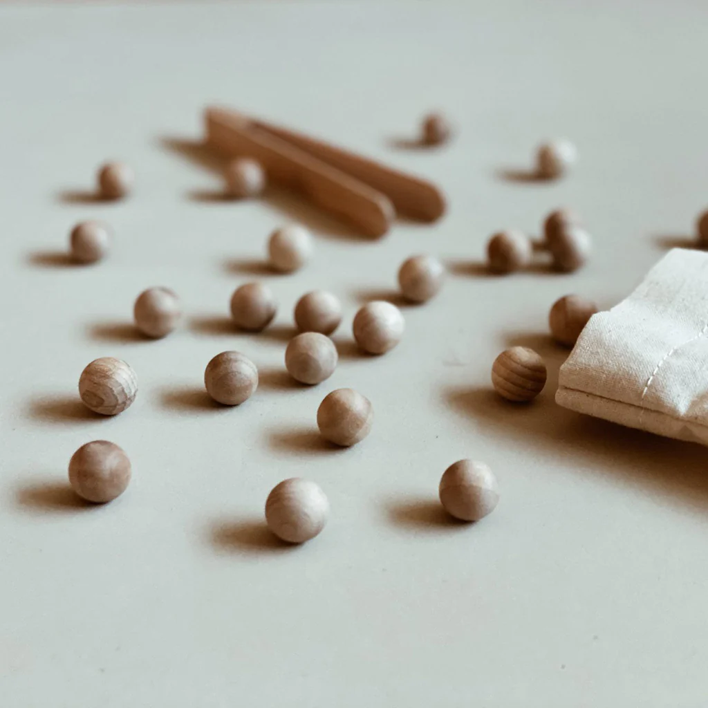 Este pack de 20 bolas de madera es el complemento ideal para la tabla del 20 de Ösbru.