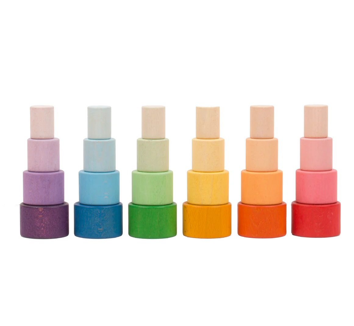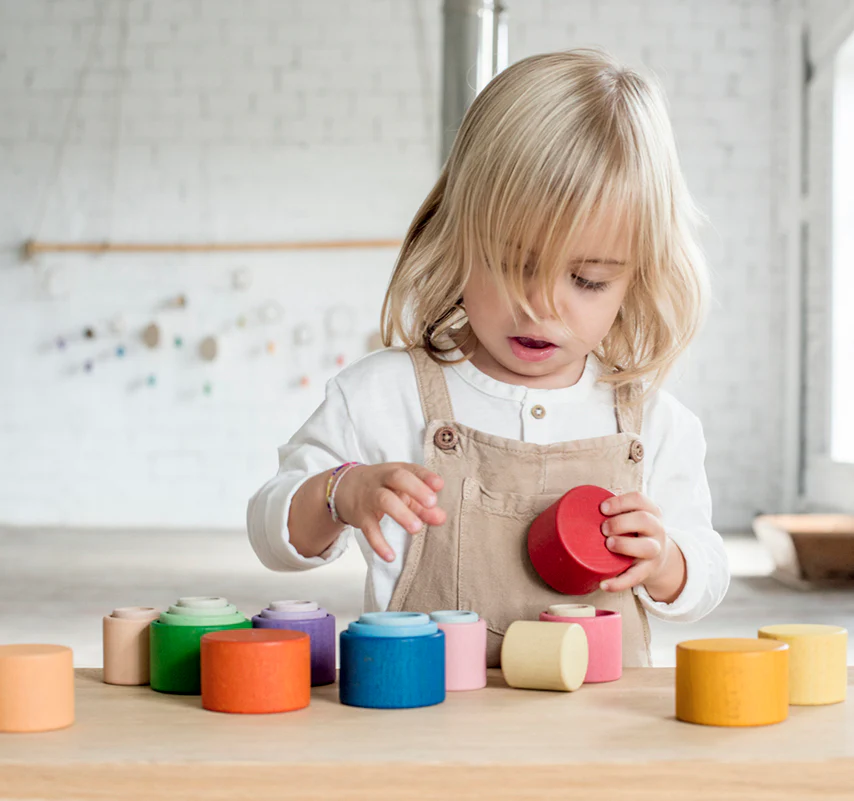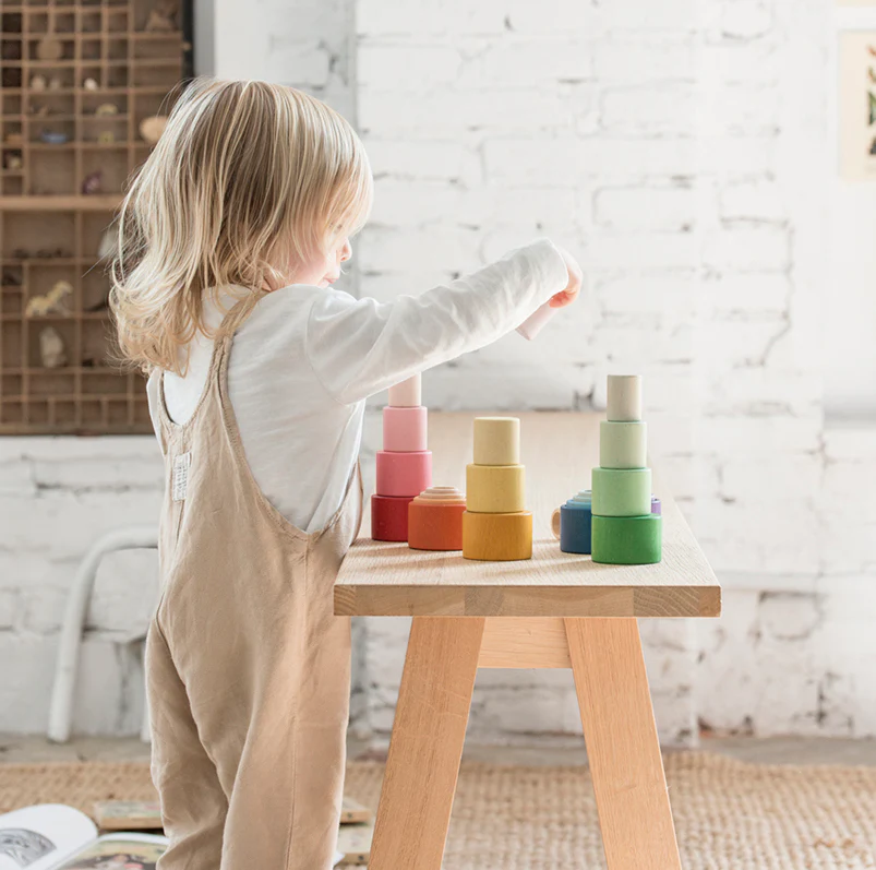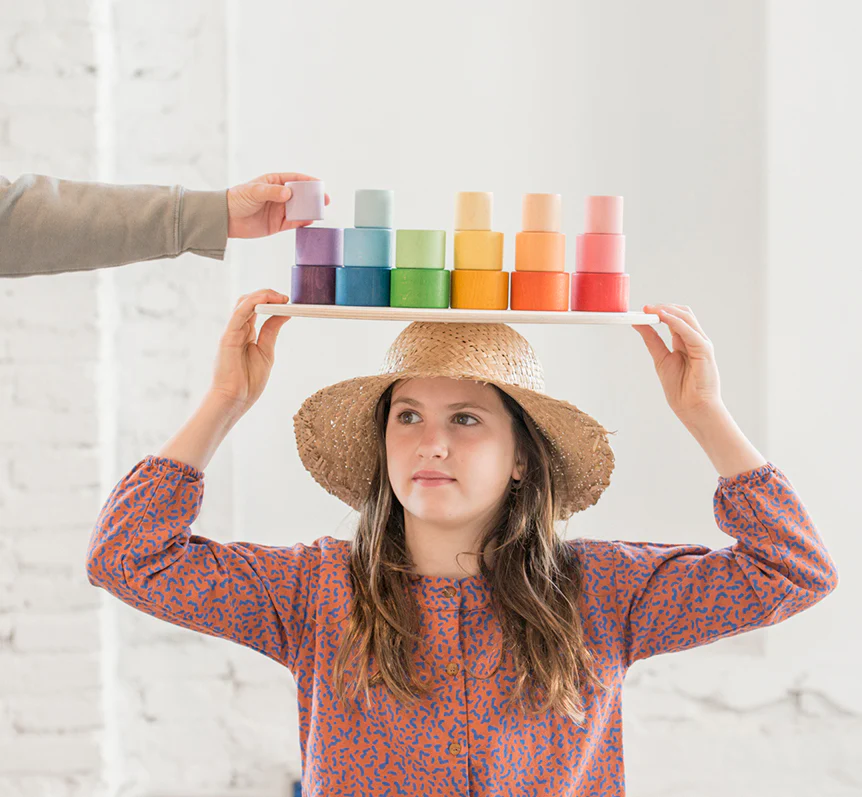 Con los bols de Grapat los niños clasifican, llenan, vacían, esconden y descubren. Crearán construcciones, torres, los harán rodar… Son elementos de juego abiertos que dan mil posibilidades a los pequeños de la casa.