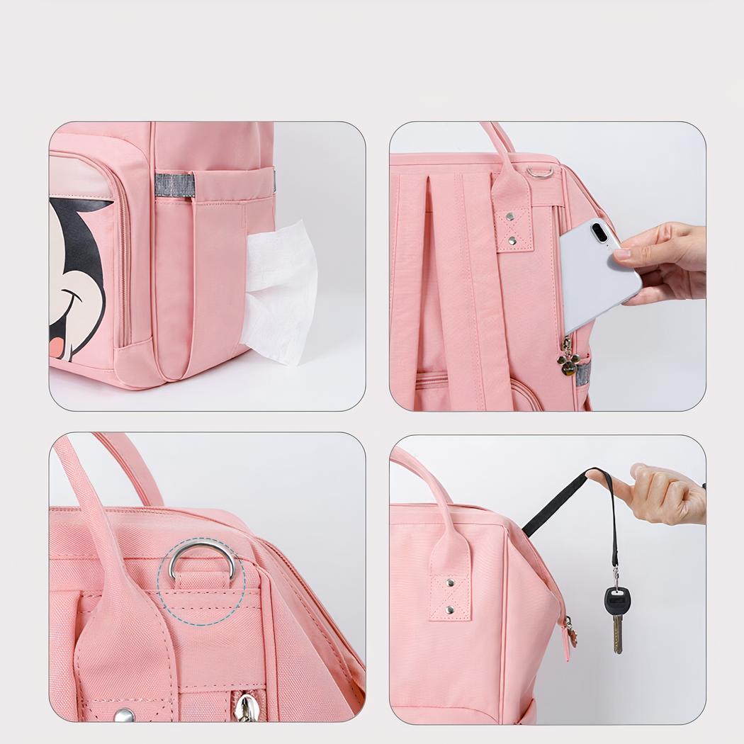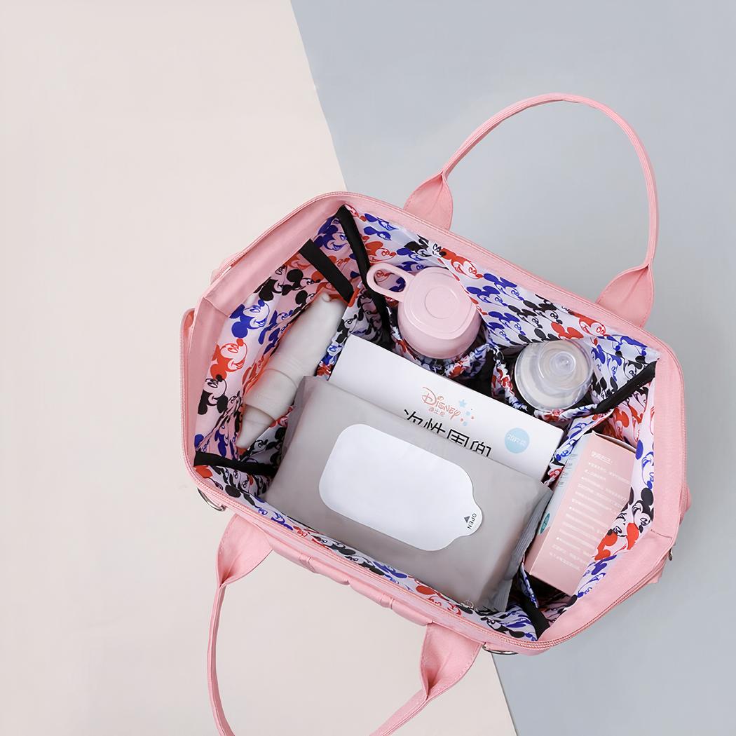 Sucumba al encanto de esta bonita bolsa cambiador para bebé con estampado de Mickey Mouse. Una mochila grande y multifuncional con 12 bolsillos para que pueda llevar todos los artículos esenciales de su pequeño. Sus salidas con el bebé serán aún más agradables con esta bolsa.
