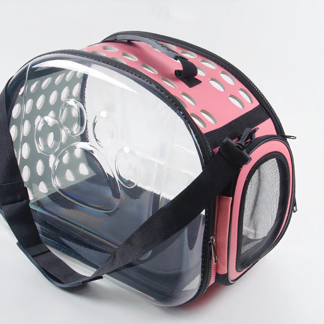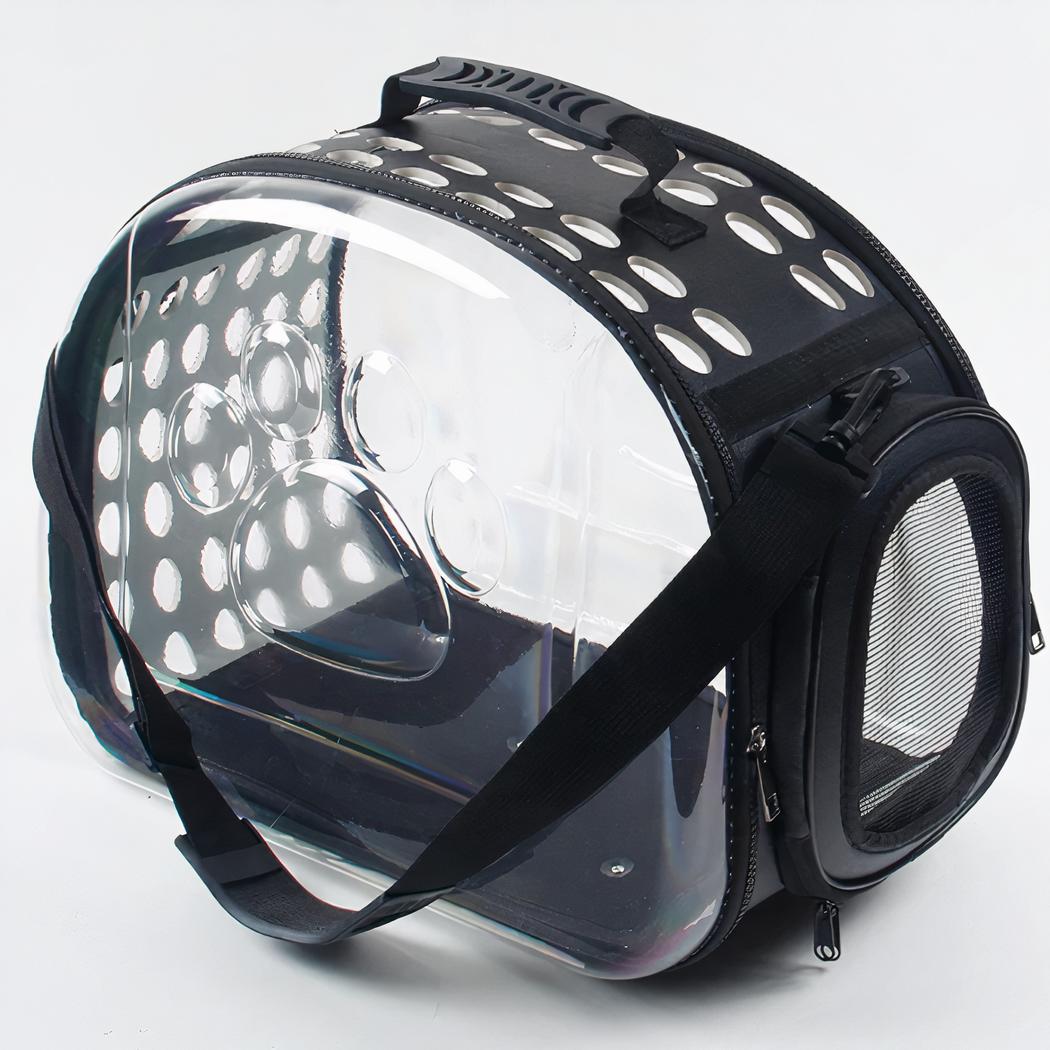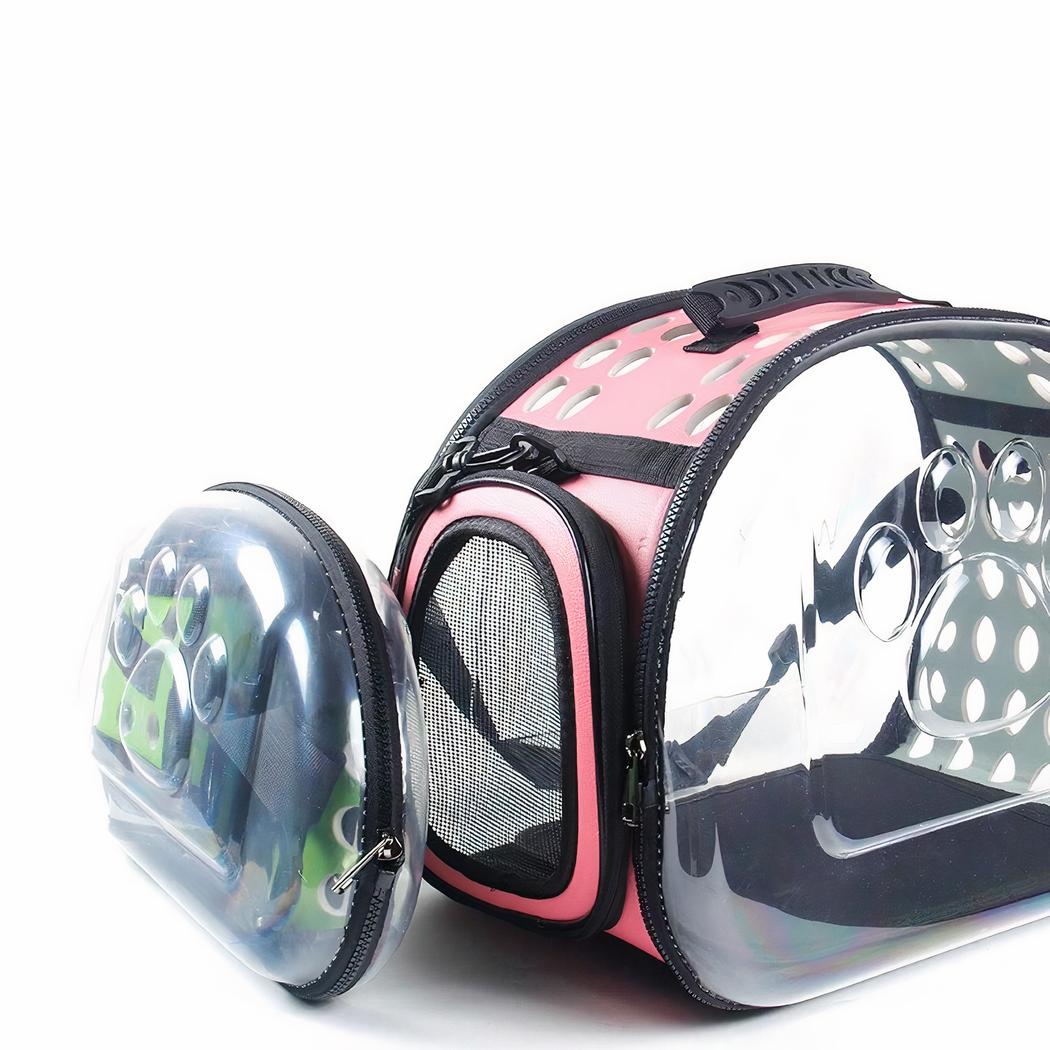 Esta bolsa de transporte transparente para perros y gatos es la solución ideal para sacar a pasear a su perro o gato. Con sus laterales transparentes, su compañero podrá ver el mundo exterior durante el paseo. Las numerosas rejillas de ventilación ayudarán a su mascota a respirar fácilmente dentro de la bolsa.
