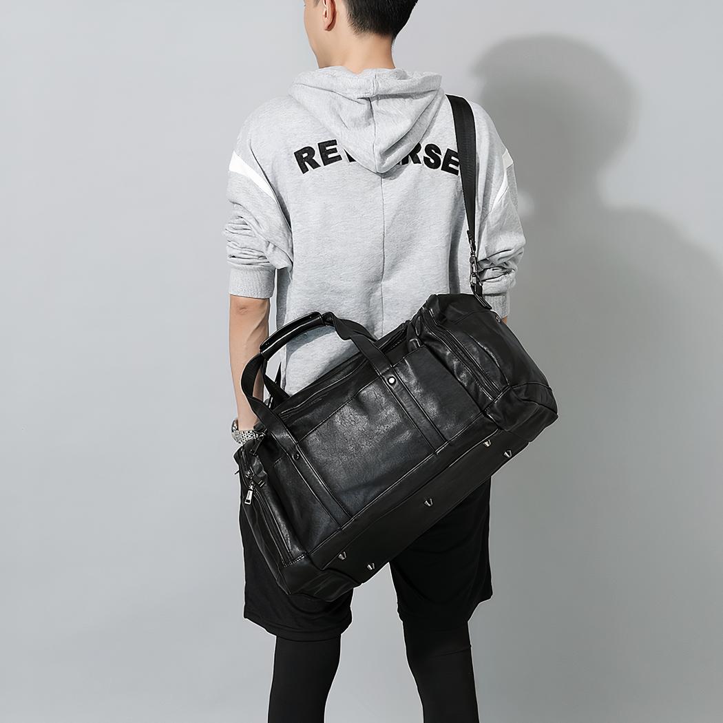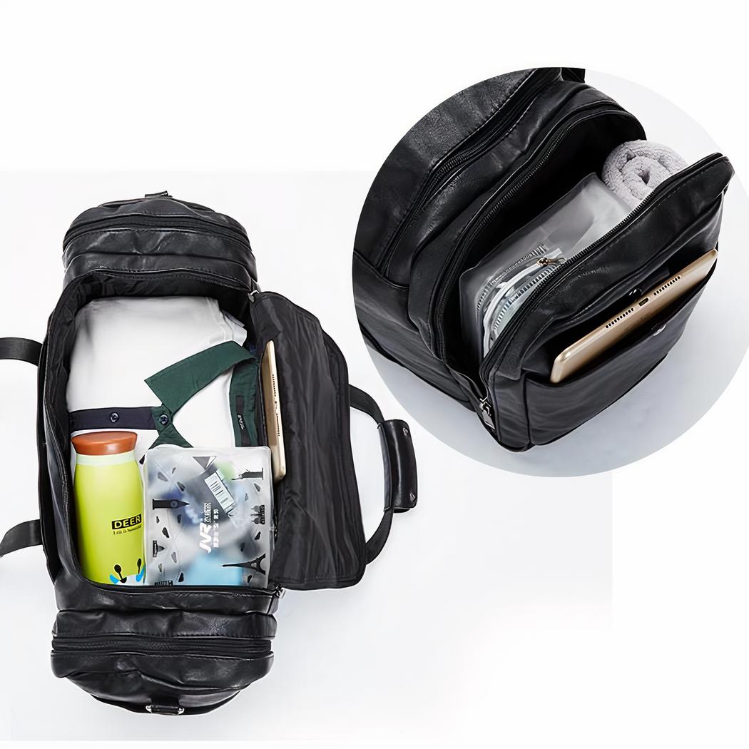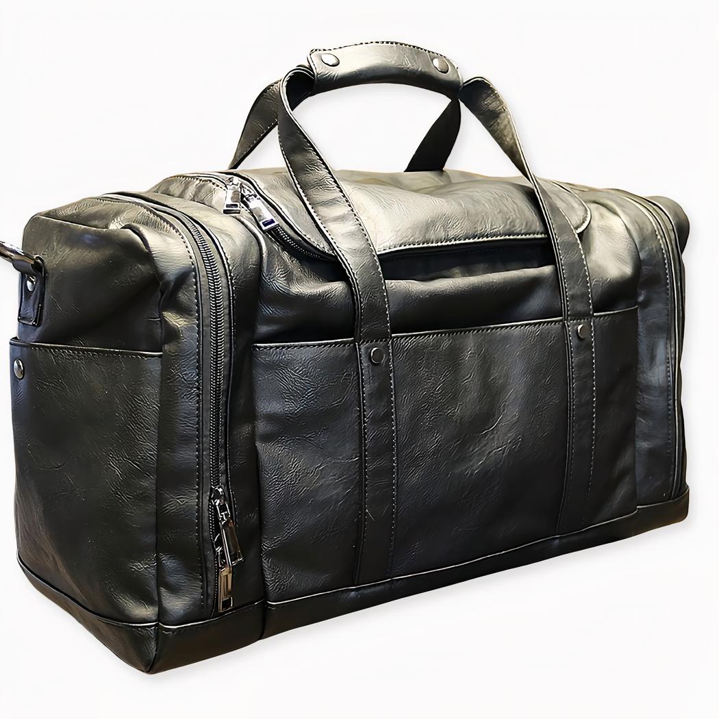 ¿Busca una bolsa de viaje grande y espaciosa que sea a la vez elegante y práctica? No busque más, esta gran bolsa de viaje multibolsillos en piel vegana negra. Perfecta para el hombre moderno en movimiento, esta bolsa de viaje negra es a la vez elegante y funcional.