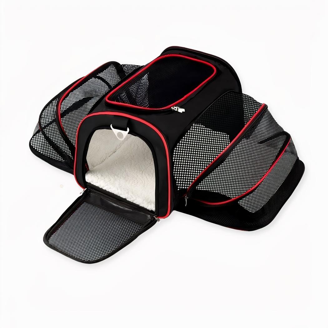 A su mascota le encantará nuestra nueva bolsa extensible para transportar animales Perfecto para viajar, su amigo de cuatro patas disfrutará de un espacio que puede duplicarse cuando la situación lo permita. Aún más espacio para disfrutar del suelo blando, ¡genial!