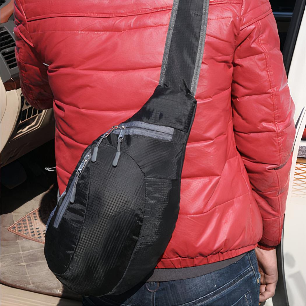 Una bandolera en varios colores, para llevar a la espalda o en la parte delantera. Impermeable y práctica, es perfecta para actividades deportivas al aire libre como el ciclismo. Puede deslizar una botella de agua en su bolsillo de malla del exterior.
