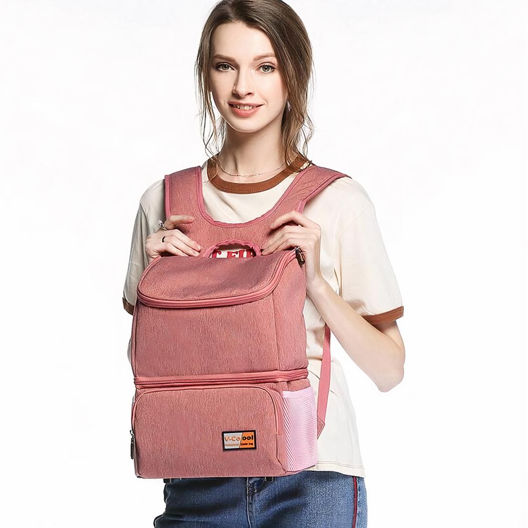 Esta bolsa cambiador isotérmica con dos compartimentos es ideal para llevar las cosas del bebé, llevarse el almuerzo o ir de picnic. Dos compartimentos, un bolsillo frontal y bolsillos laterales de malla para un almacenamiento óptimo. ¡Perfecta para usted!