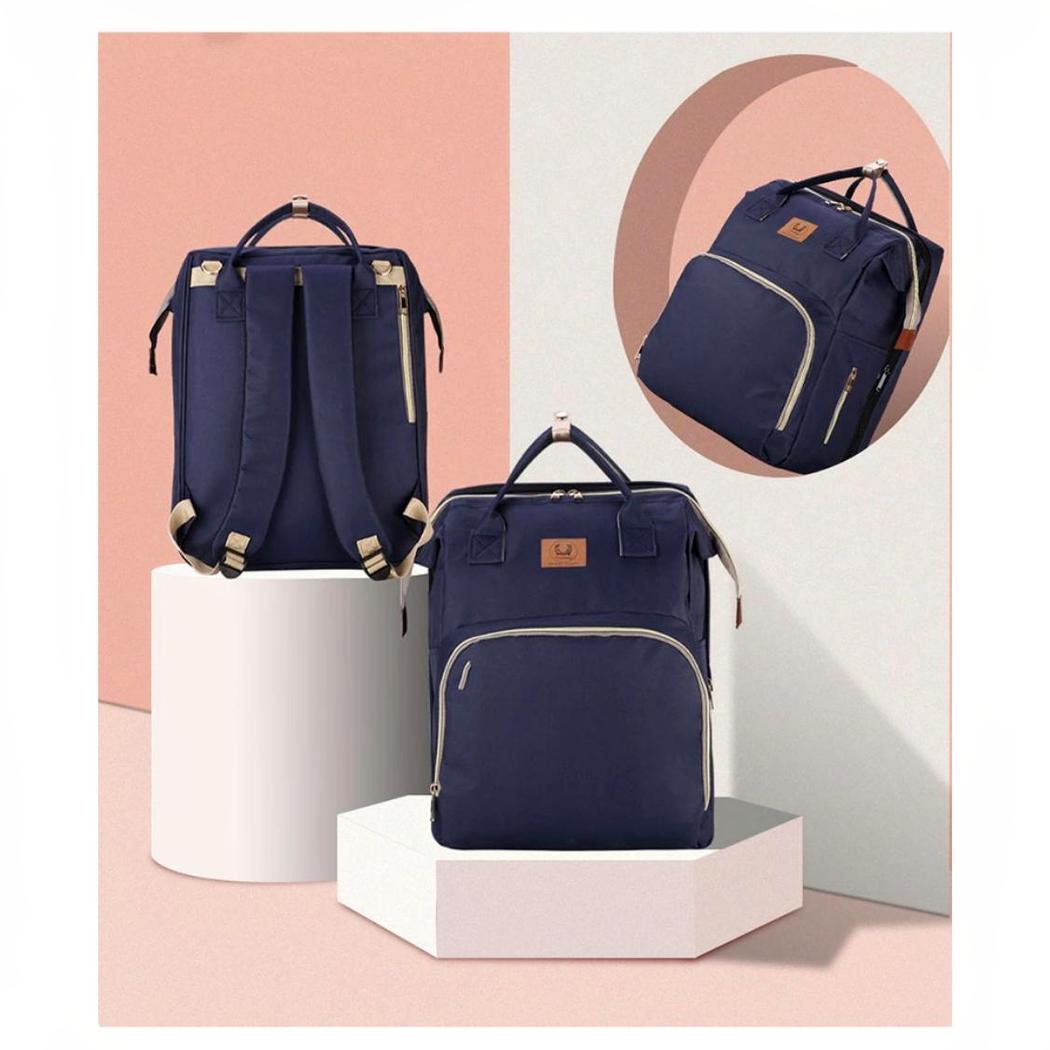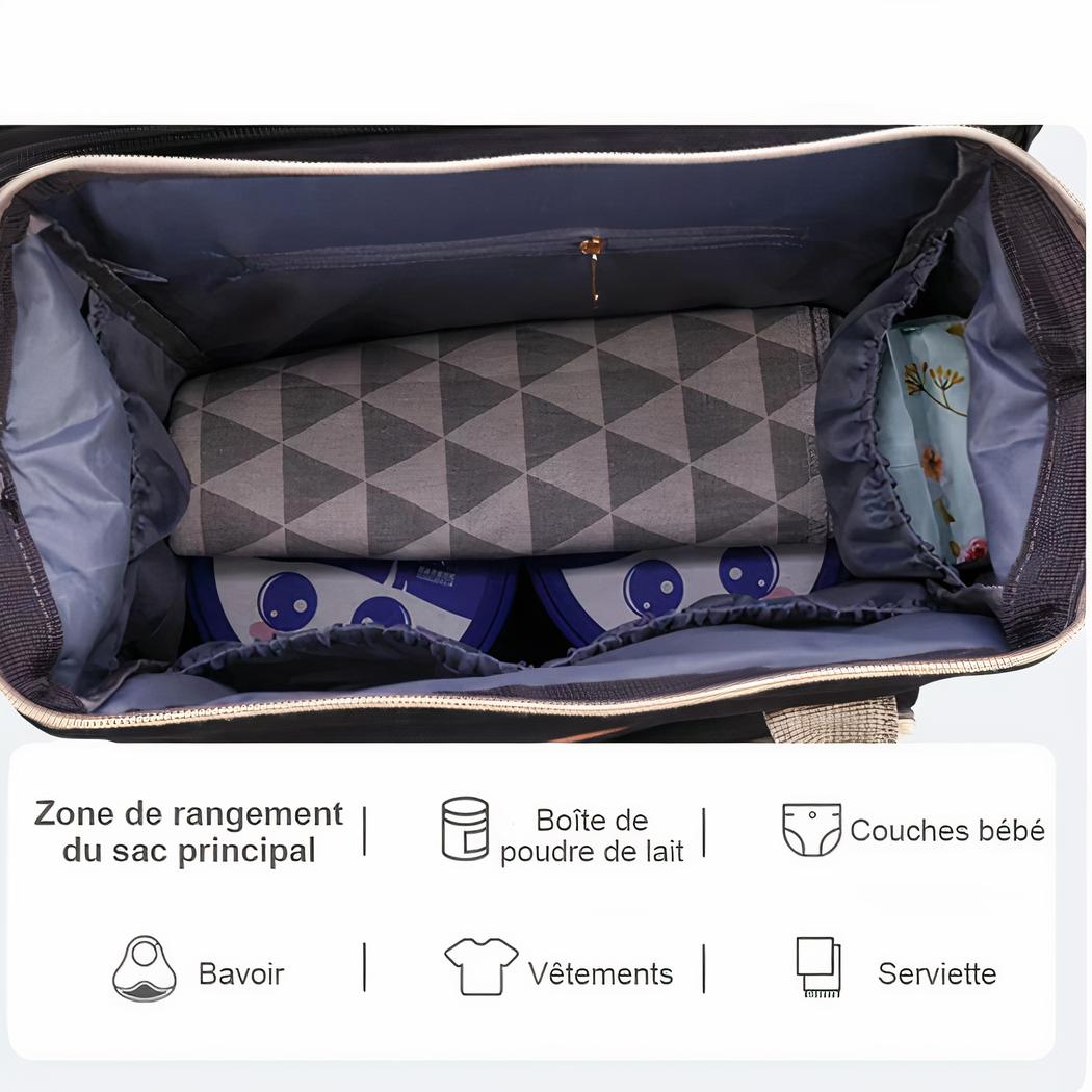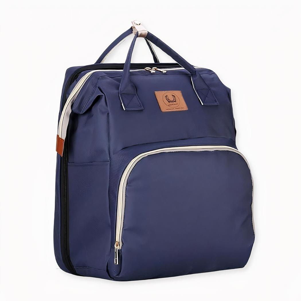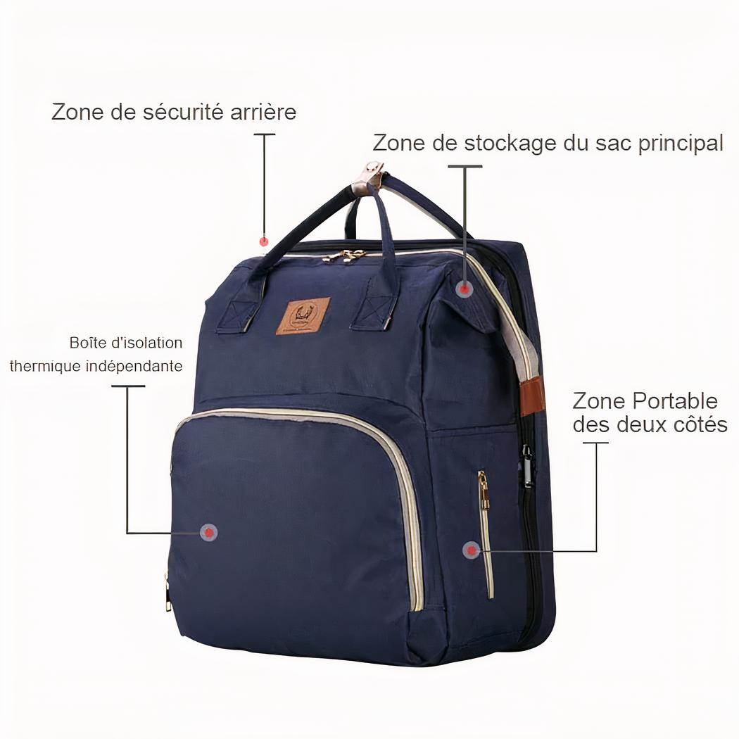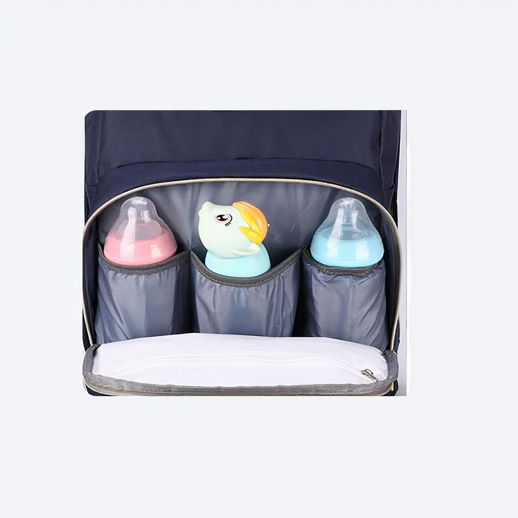Descubra este bolso cambiador convertible para cambiar los pañales de su bebé. Ahora puede tumbarle cuando quiera y cambiarle en cualquier sitio. Esta bolsa tiene muchos bolsillos y tres bolsillos para biberones en la parte delantera con aislamiento para mantener la temperatura.