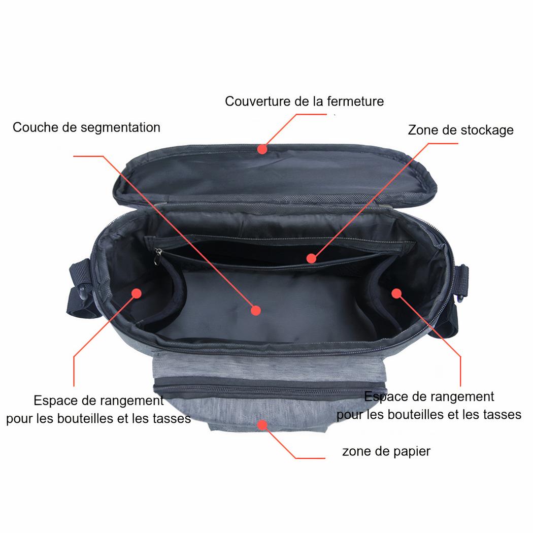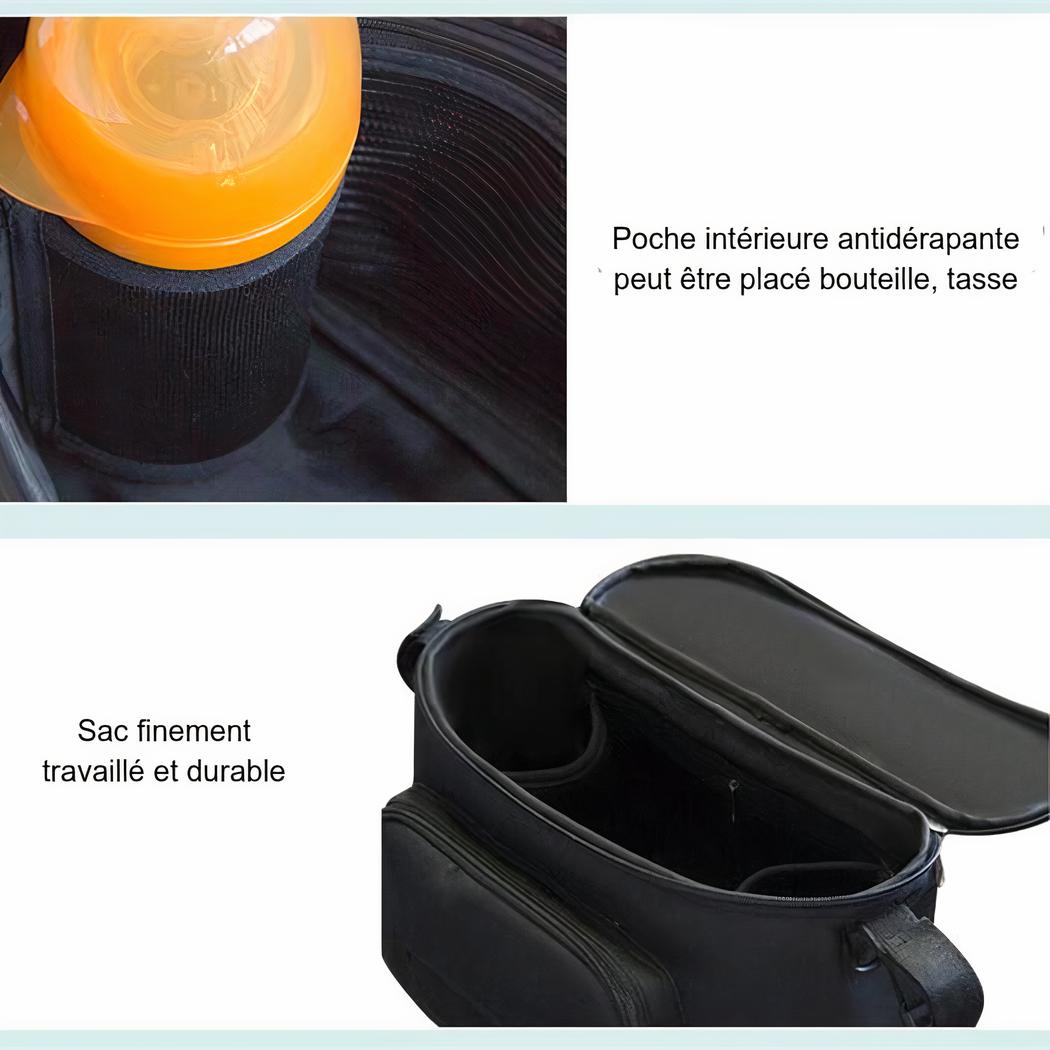 Este bolso cambiador para cochecito con bolsillo dispensador de toallitas es perfecto para llevar consigo todos los artículos esenciales de su bebé durante los desplazamientos. Fabricado con materiales de calidad, tiene mucho espacio de almacenamiento.