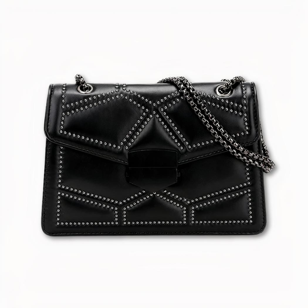 Enamórese de nuestra bandolera de perlas. Es el accesorio perfecto para complementar su estilo diario. Con su elegante estampado geométrico y su borde de cuentas, combina sofisticación y durabilidad. Su robusta correa de cadena y su generoso espacio lo convierten en una opción ideal para cualquier ocasión.