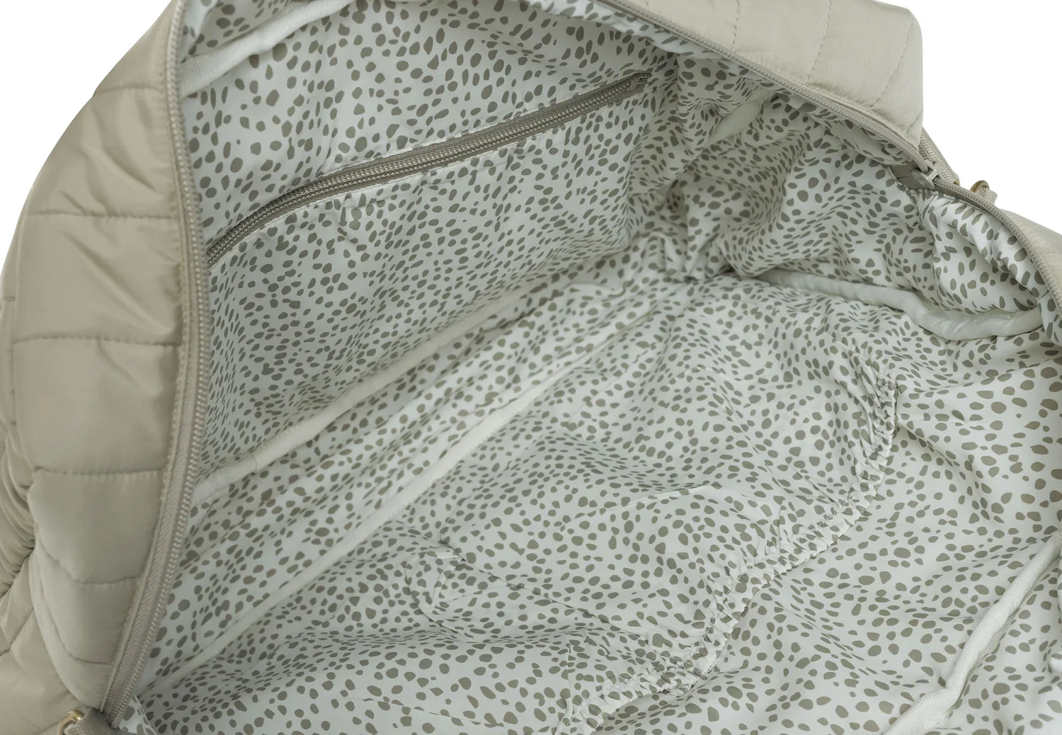 El forro interior con estampado de lunares añade un toque divertido y elegante, mientras que el efecto acolchado hace que luzcas moderna en cualquier ocasión. Disponible en colores tendencia: galleta, verde oliva y negro, este bolso es perfecto para mamás que buscan practicidad y estilo en un solo accesorio.