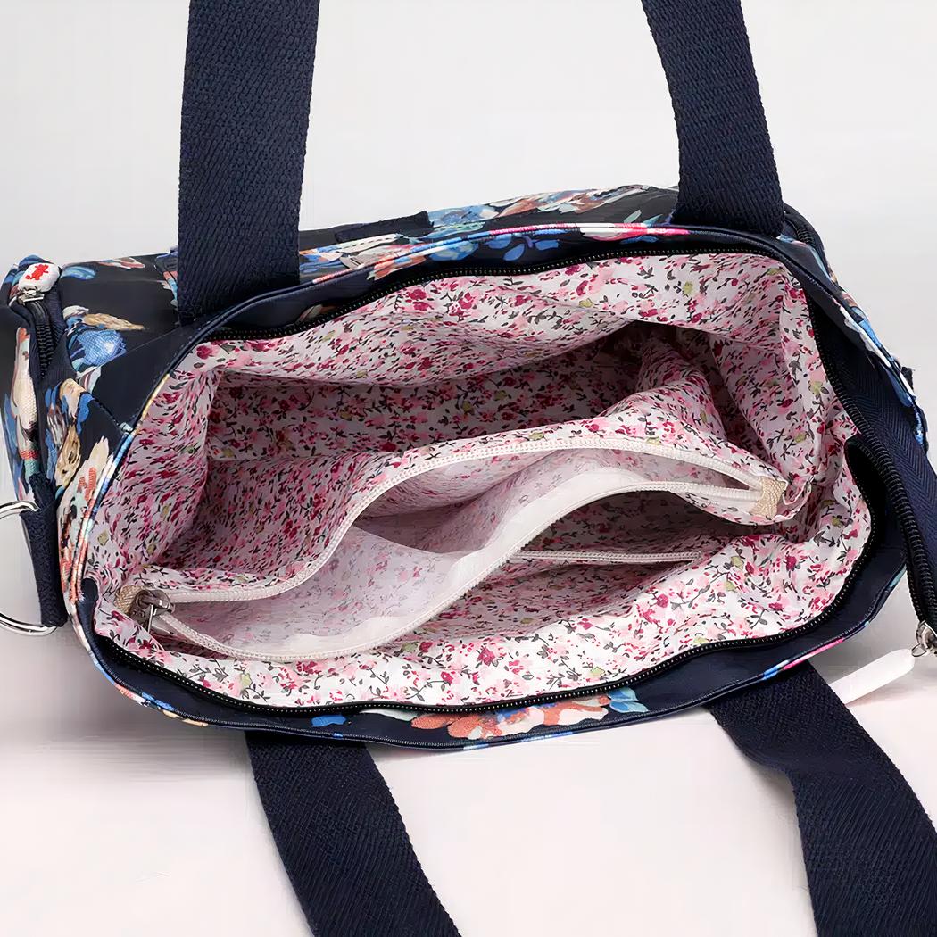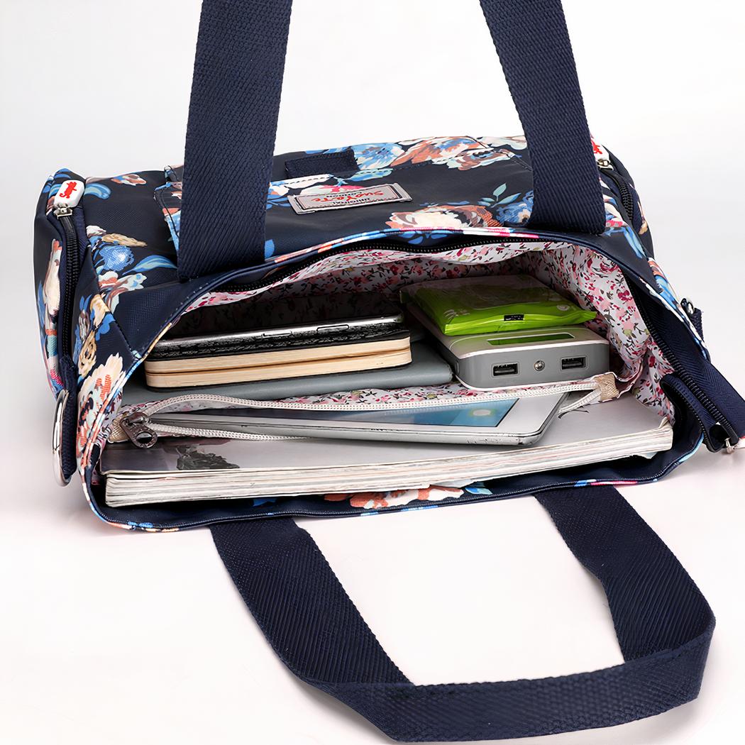 Este bolso de mano con estampado floral para mujer es justo lo que necesita para añadir un toque de estilo a su atuendo de trabajo o de viaje. El tejido de poliéster es moderno y duradero, lo que lo convierte en una opción perfecta para el uso diario.