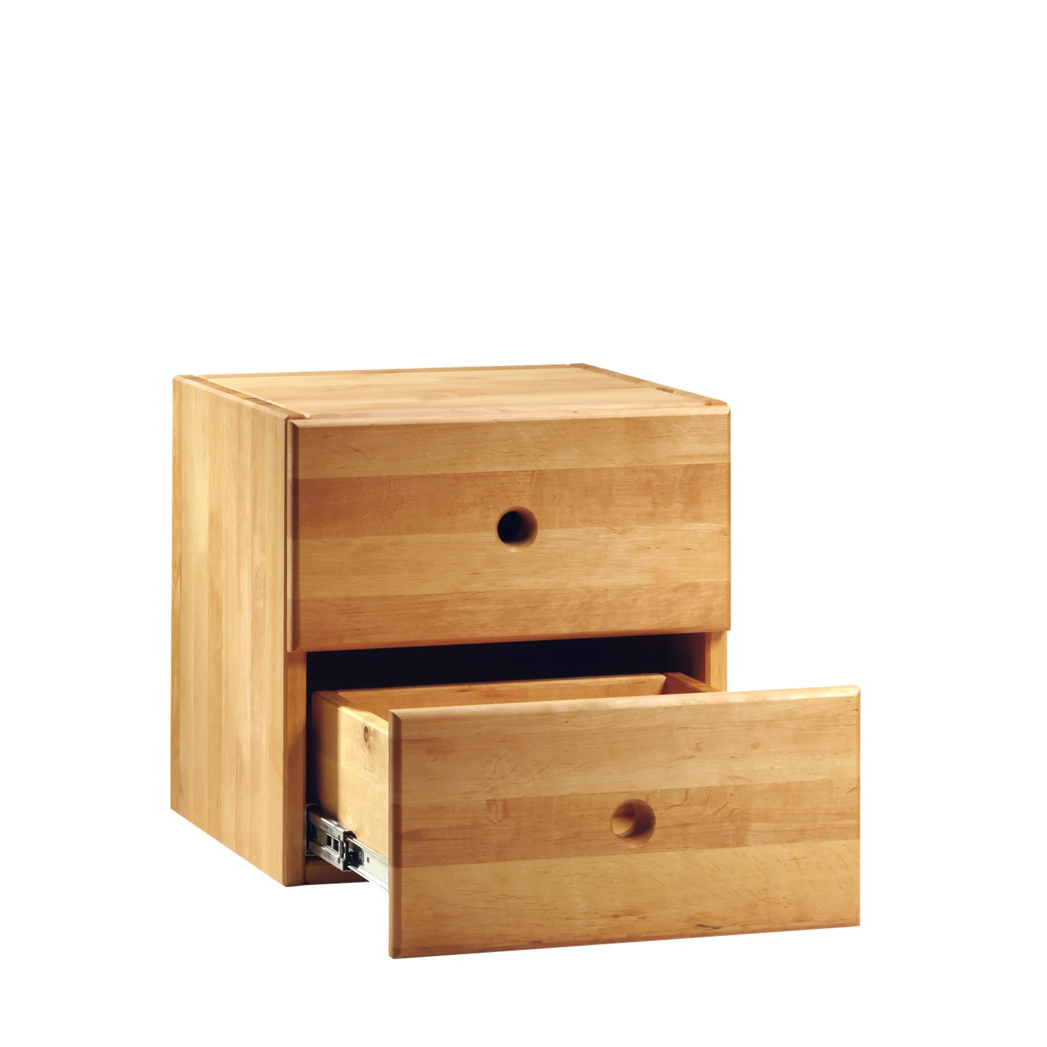 Con los dos cajones, la caja Max en una estantería o una mesita de noche con doble función: estante superior y espacio de almacenamiento en el interior.