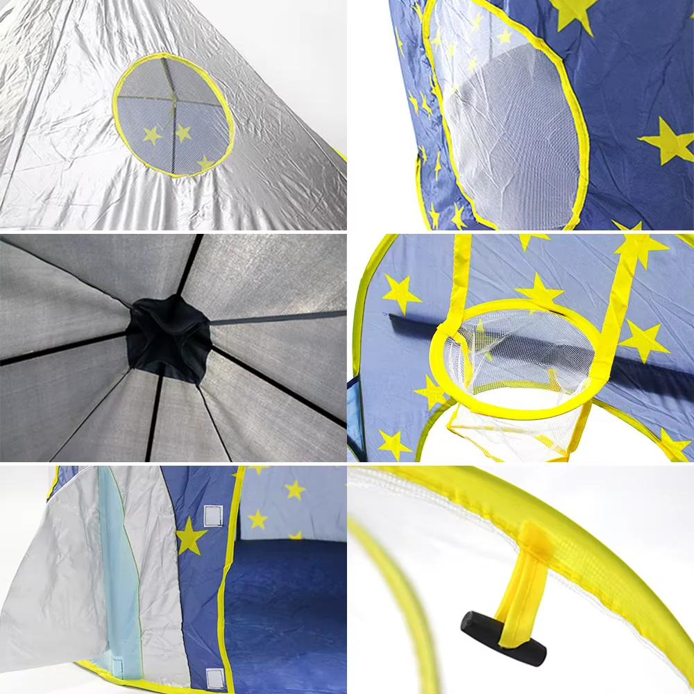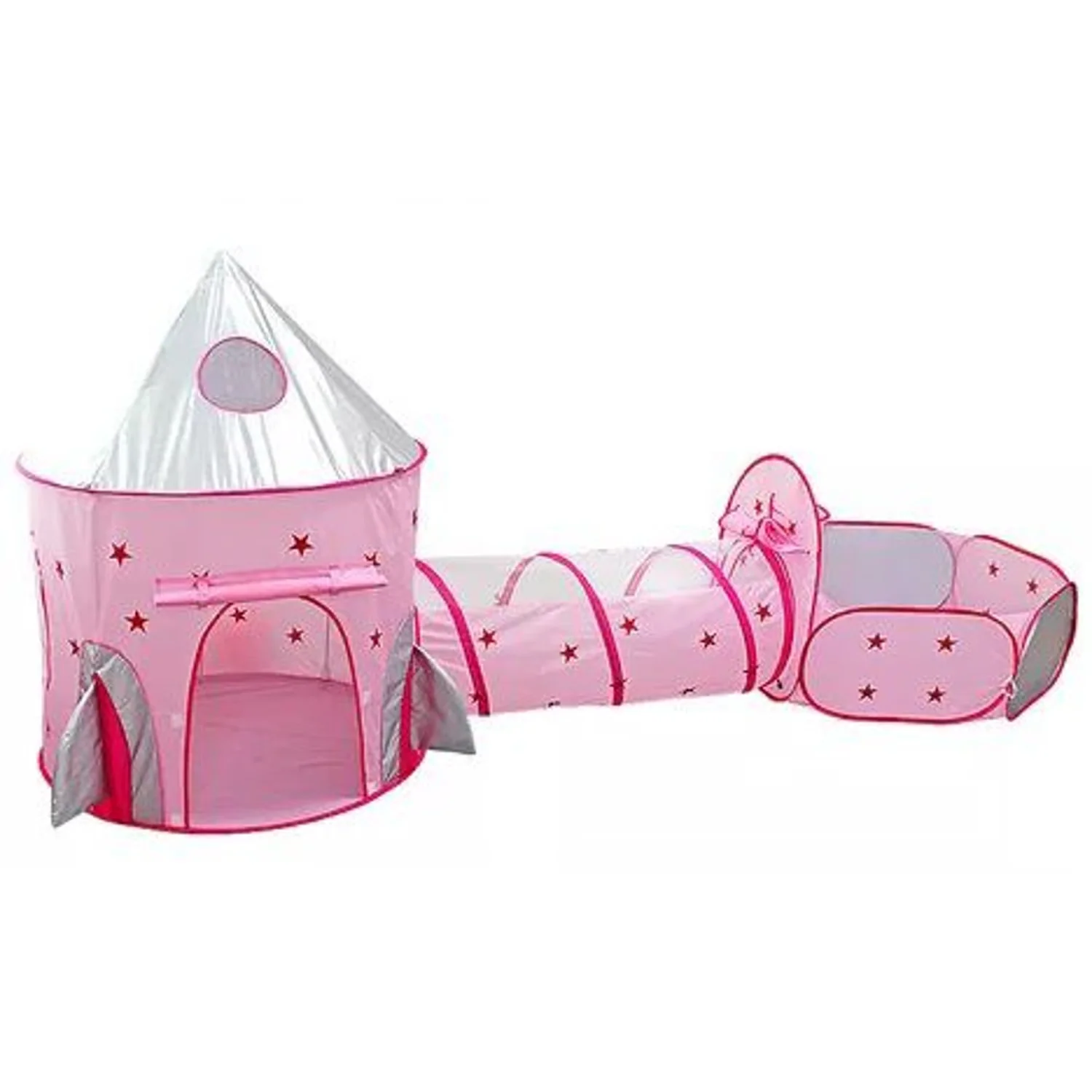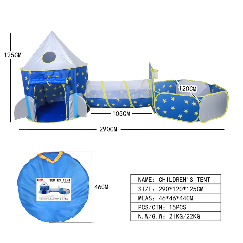 Castillo Espacial 3 en 1 con túnel y zona de juegos ¡Dale a tus pequeños astronautas la aventura que merecen con esta increíble tienda de campaña infantil 3 en 1! Diseñada con un divertido estampado de estrellas sobre un fondo azul, este conjunto ofrece una experiencia de juego única con tres espacios interconectados: