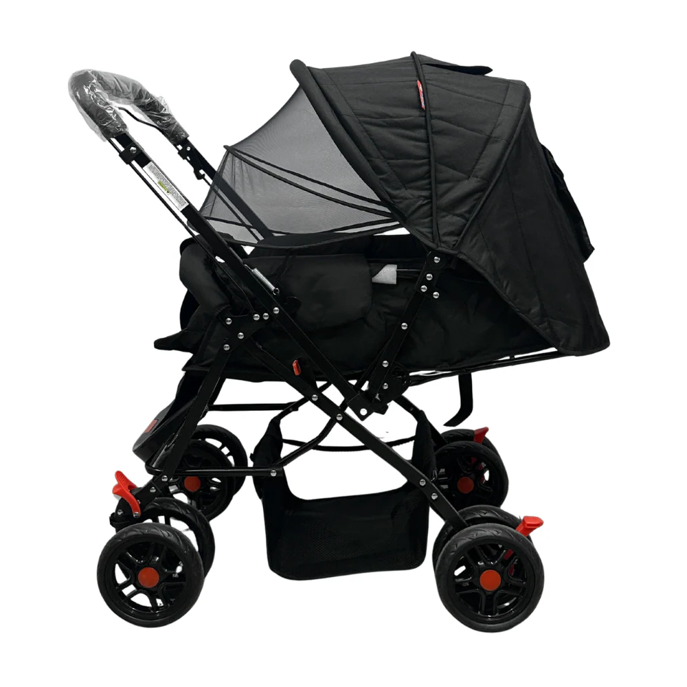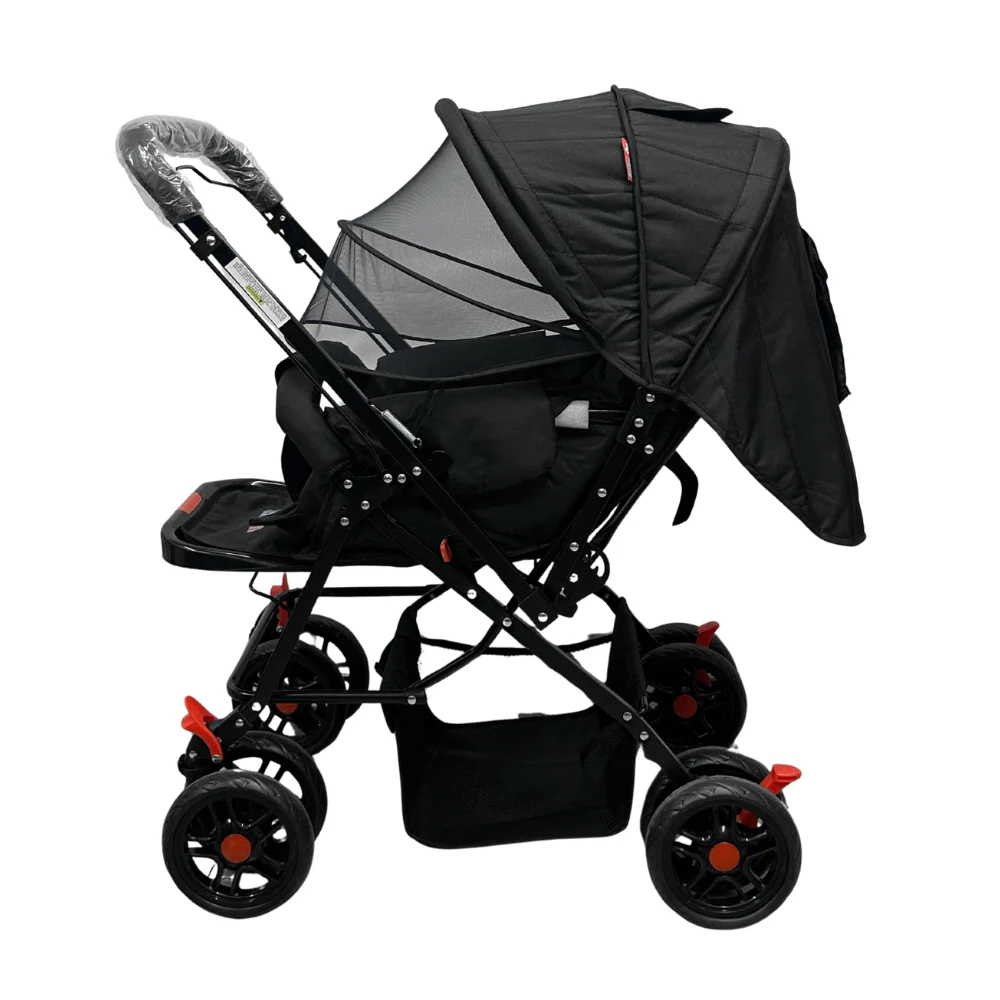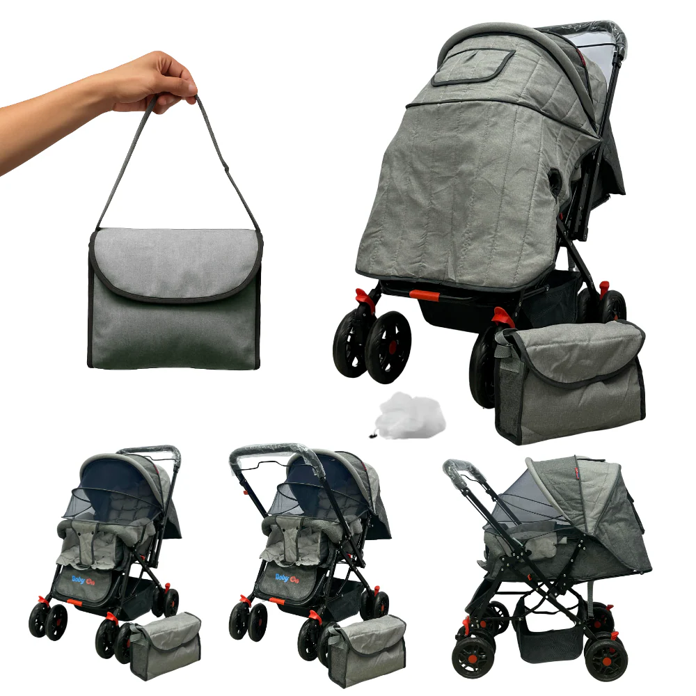 COCHE (DELUXE) REVERSIBLE+ PAÑALERA + CUBREPIES +CAPOTA PROTECTORA + MOSQUITERO + ACOLCHADO COMODO+ PLEGADO RAPIDO Y COMPACTO – MATERIAL ANTIFLUIDOS,FACIL LIMPIEZA