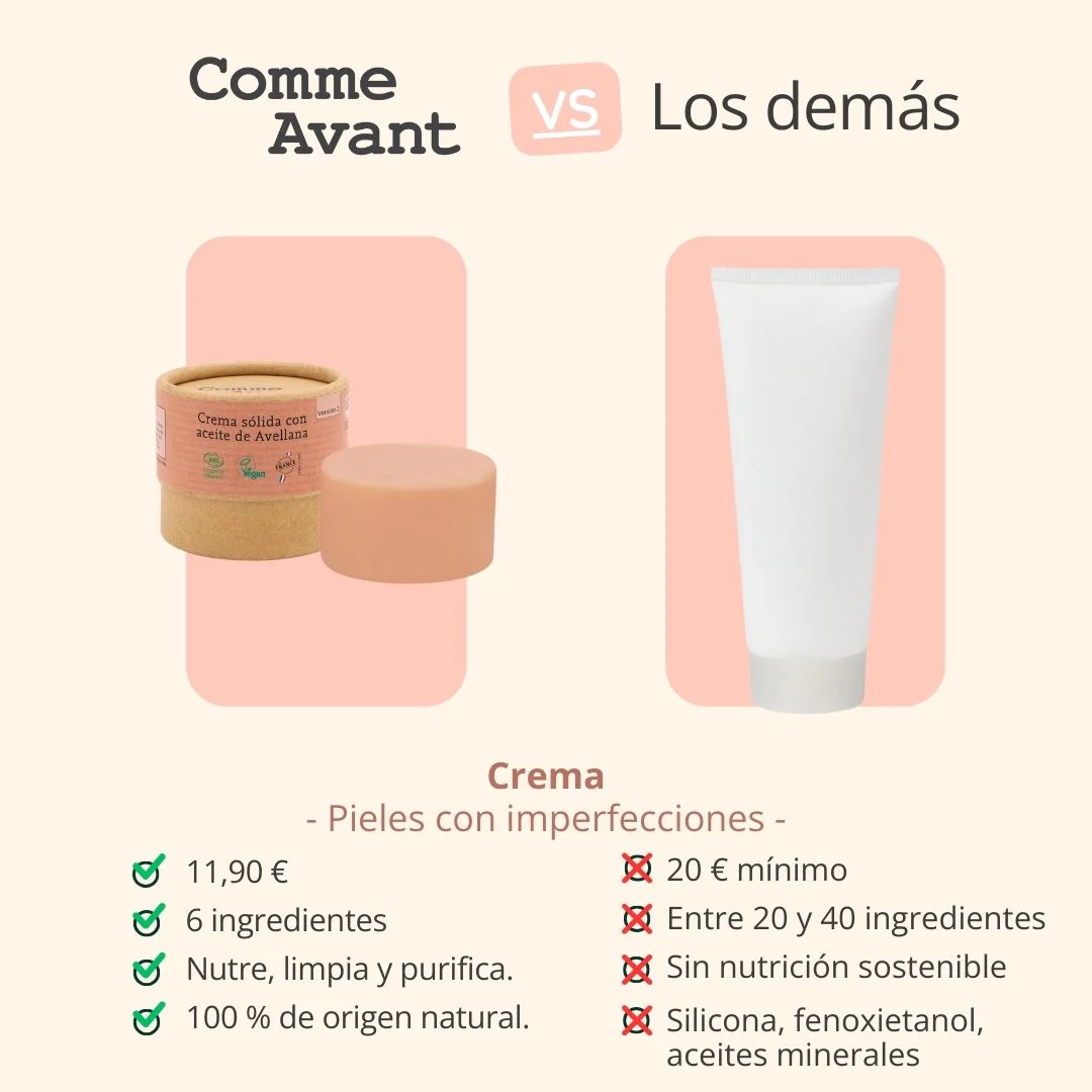 Descubra nuestra crema con aceite de avellana y polvo de Manjishta, formulada para actuar sobre las pieles con tendencia a presentar imperfecciones. Estos ingredientes ayudan a regular las imperfecciones de la piel: exceso de sebo, rojeces, granos o puntos negros. El aceite de avellana también aporta elasticidad a las pieles maduras.