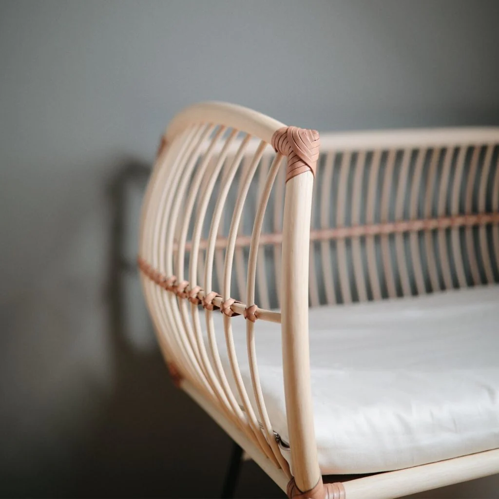 La mini cuna Martha está realizada a mano con materiales naturales y libres de sustancias químicas.
