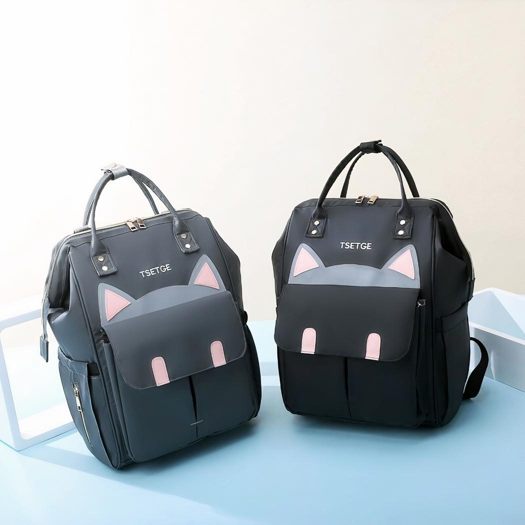 Una elegante bolsa cambiador con motivos de gatos para los padres que viajan mucho con su bebé y quieren ser originales. Esta mochila le permitirá llevar las cosas de su pequeño sin ocupar demasiado espacio ni comprometer su look.