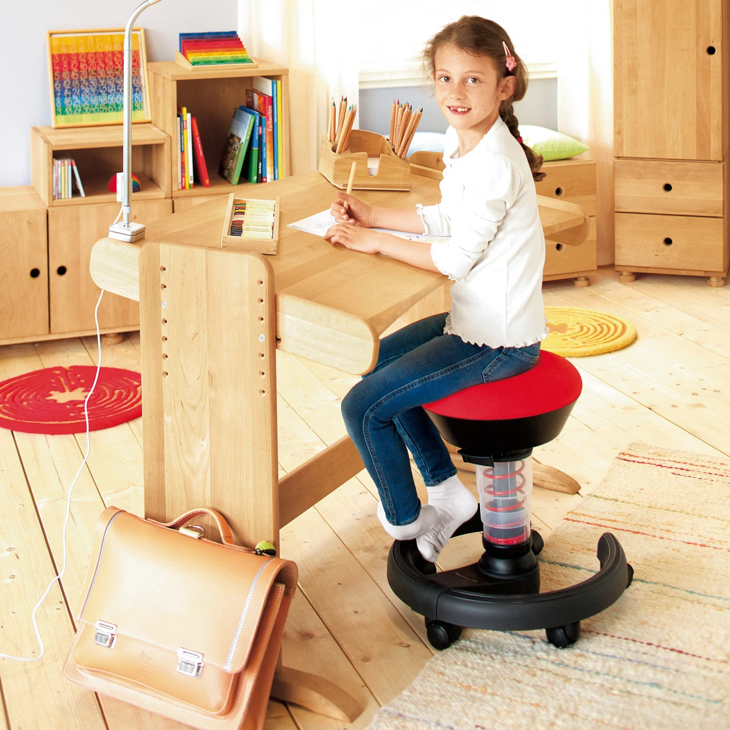 El escritorio Milan dispone de un mecanismo que le permite ajustarse a la inclinación deseada y a la altura del niño, en cada momento. Fabricado en madera maciza de aliso ecológica. Se puede combinar con el Cajón de Escritorio.