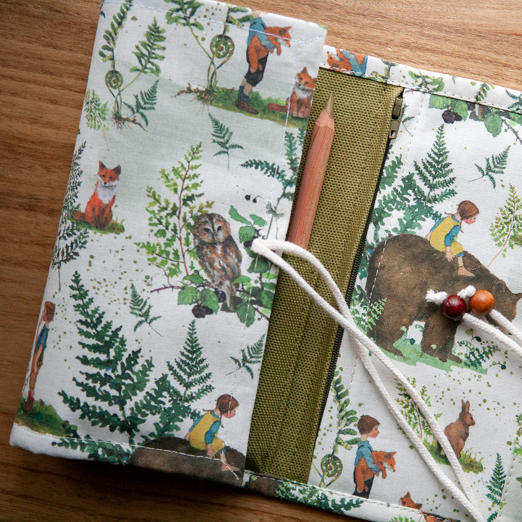 Increíble y completo gran estuche realizado a todo detalle y delicadeza por Aizarna Donostia, con telas de algodón 100% de la ilustradora, arte terapeuta y escritora Daniela Drescher con tiernos motivos de la naturaleza.