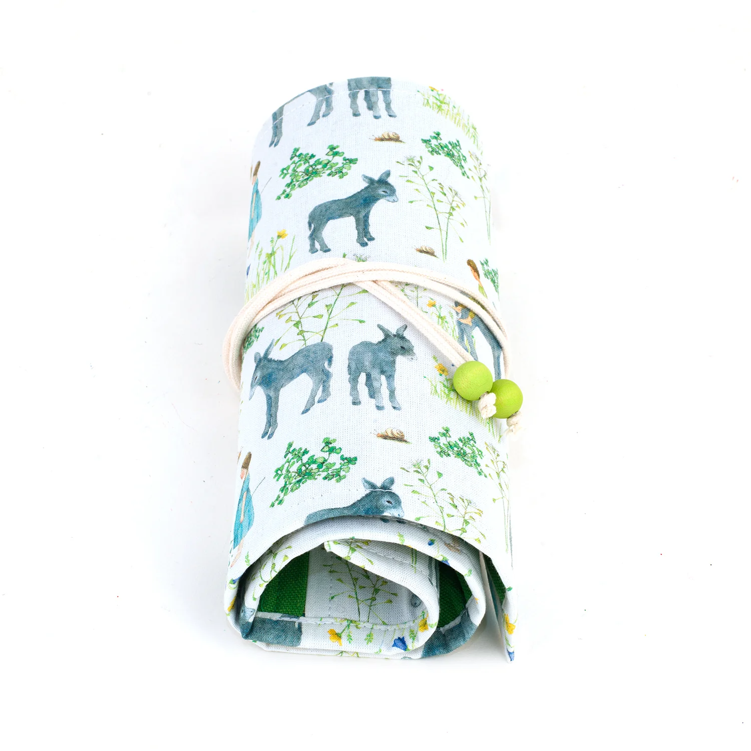 Increíble y completo gran estuche realizado a todo detalle y delicadeza por Aizarna Donostia, con telas de algodón 100% de la ilustradora, arte terapeuta y escritora Daniela Drescher con tiernos motivos de la naturaleza.