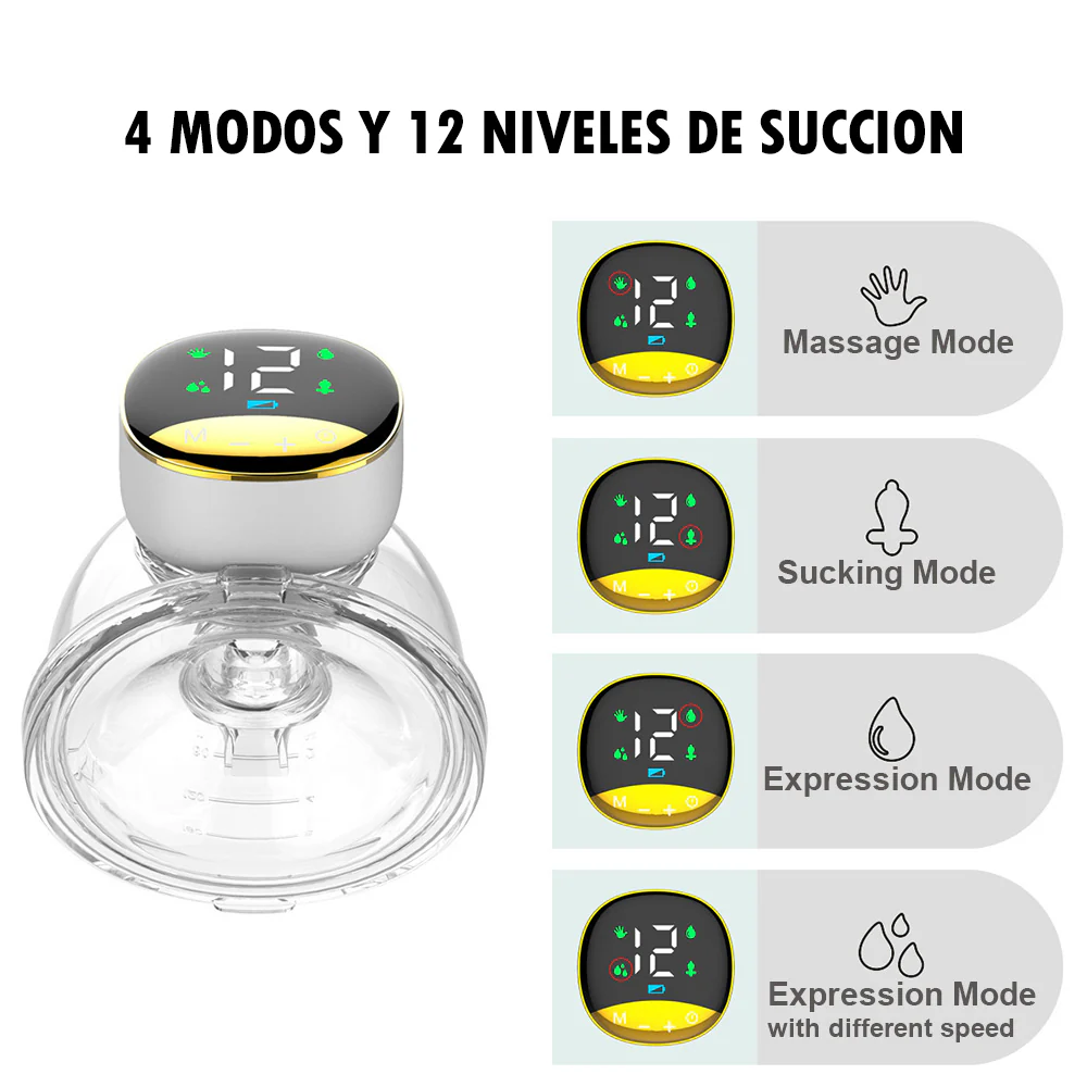Este sacaleches eléctrico portátil es la solución ideal para madres que buscan comodidad y practicidad. Su diseño ergonómico y compacto permite usarlo discretamente debajo de la ropa, facilitando la extracción de leche en cualquier momento y lugar.