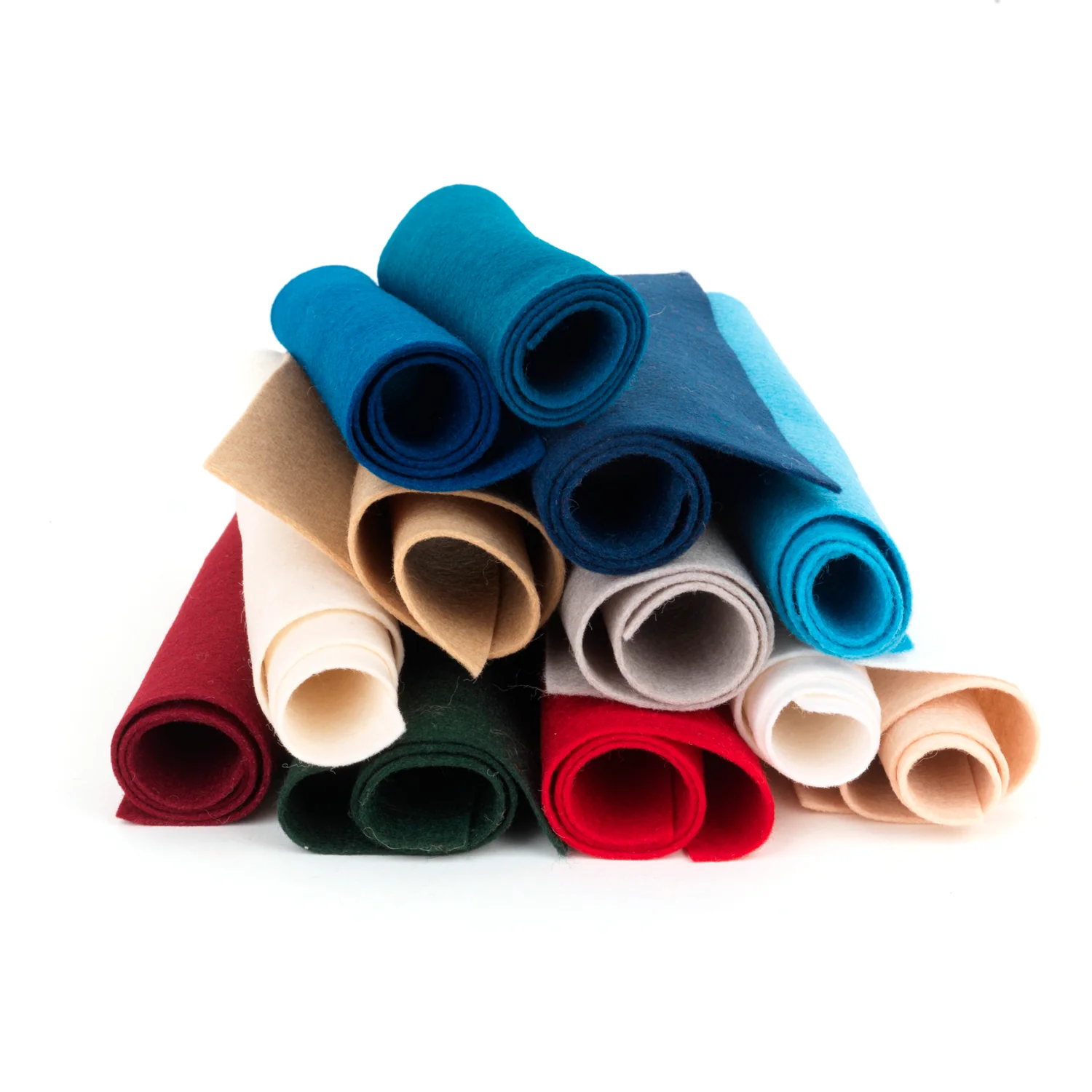 Completo pack de 12 armoniosos colores para realizar manualidades con las navideñas tonalidades de los meses de Invierno. Verde abeto, blancos, beiges, azules y rojos llenan la paleta de estos fieltros.