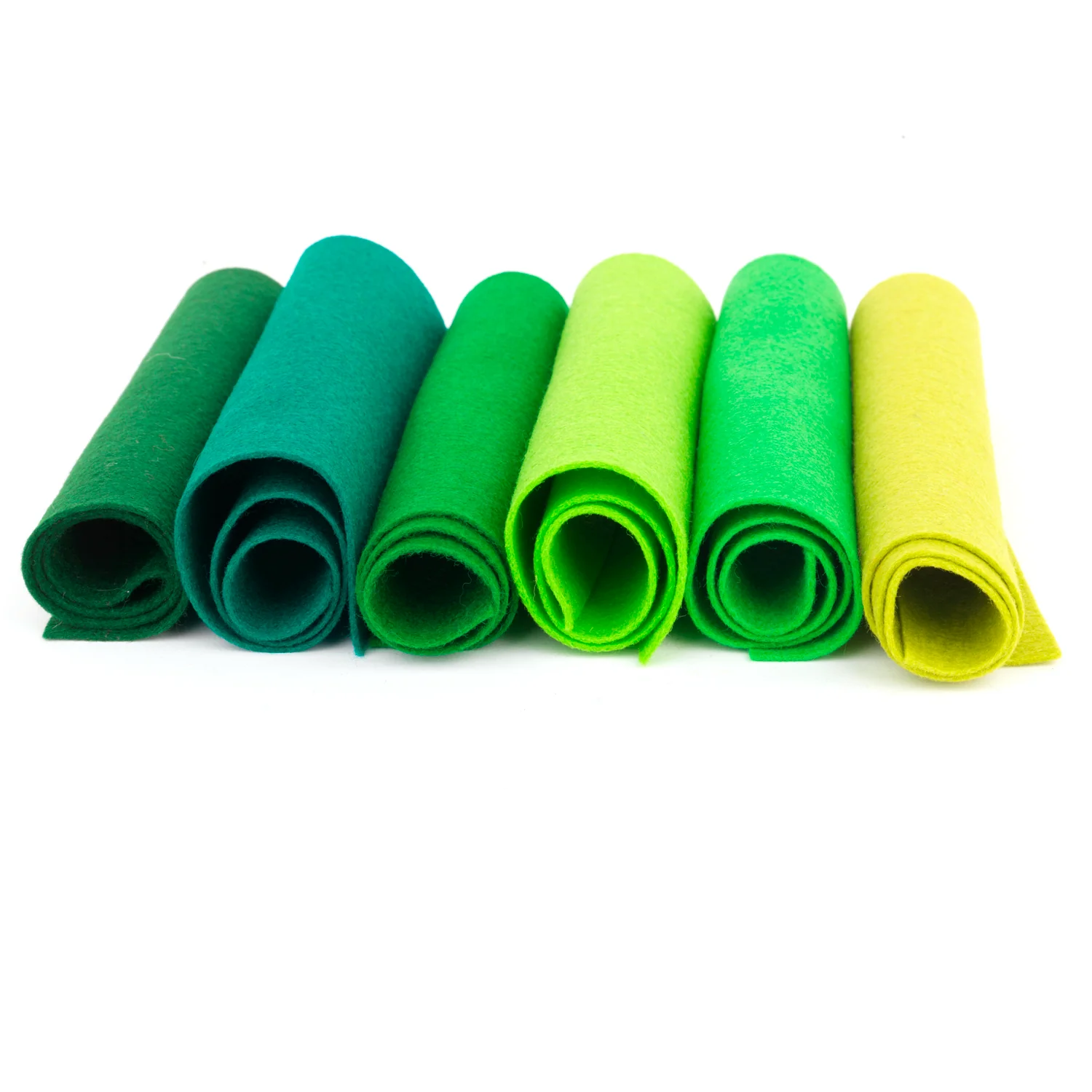Con este pack de 6 fieltros en paleta de verdes tus manualidades destacarán por su riqueza. Los puedes combinar con otras paletas, con los pack de las estaciones o de intensidad de color.