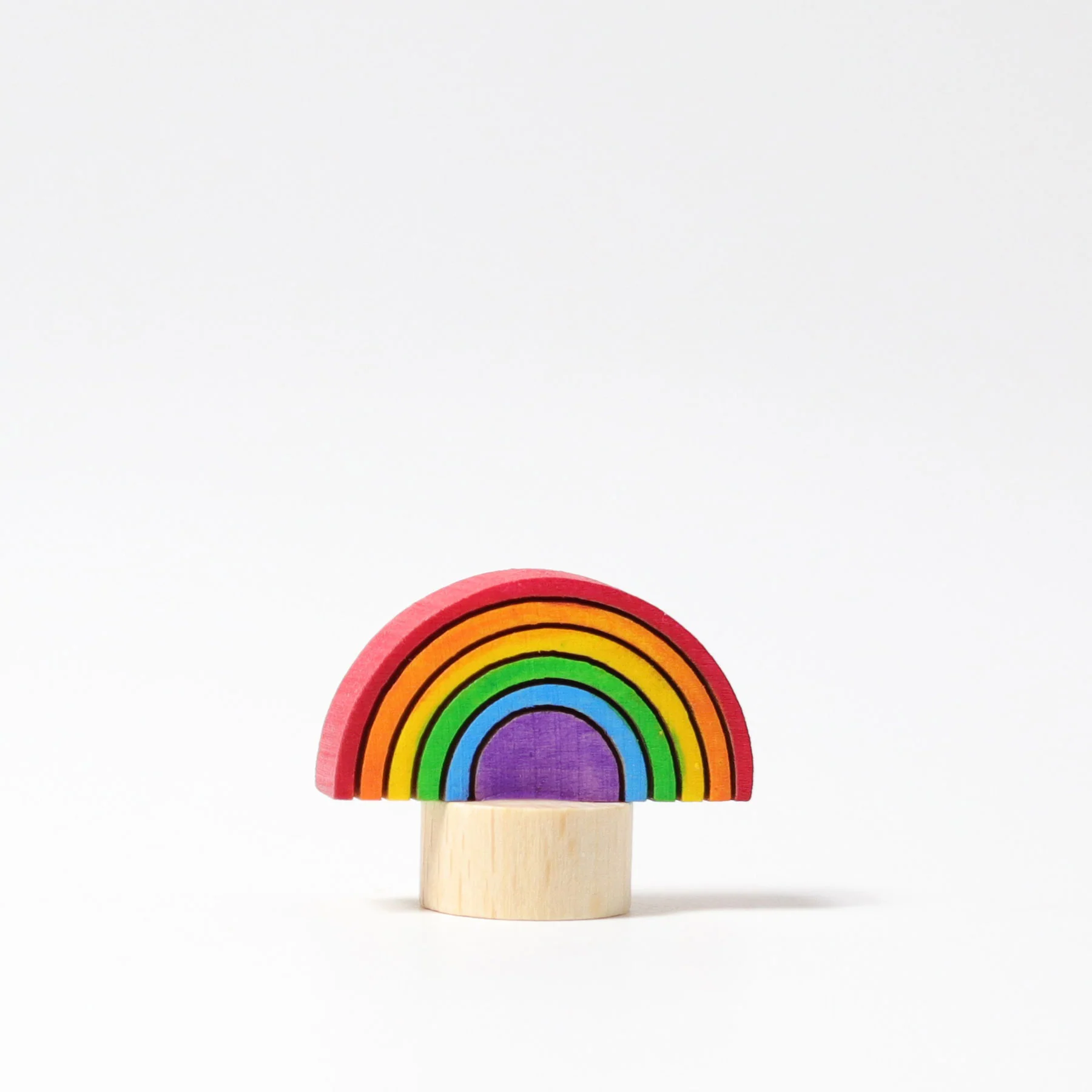 Bonita figurita de madera con forma de arcoíris pintada a mano. Quedará preciosa en la mesa de estación, como decoración de cumpleaños o para llenar de color y vida un rincón especial de la casa.