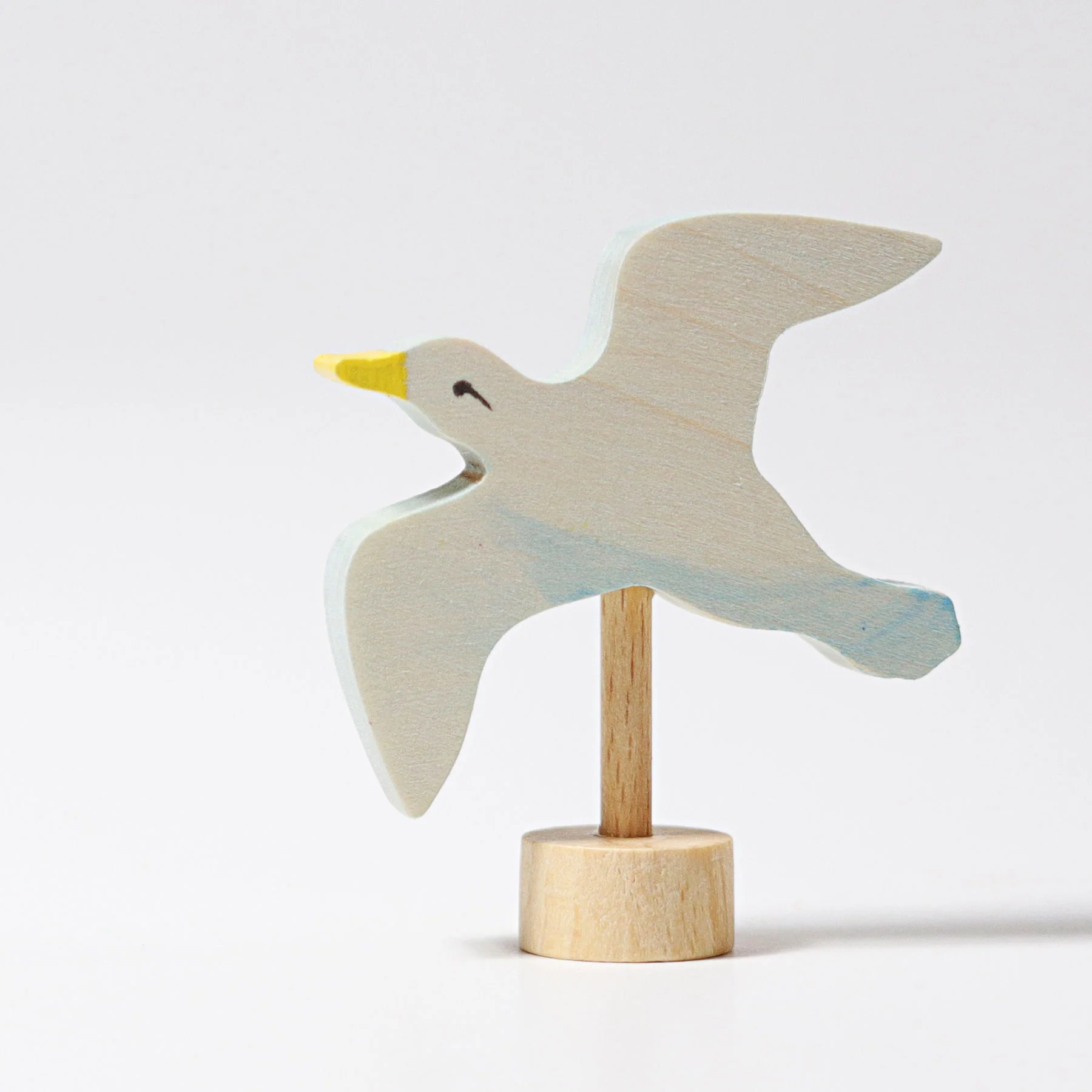Bonita figurita de madera en forma de gaviota volando, bellamente pintada a mano con un bonito y delicado degradado. Se trata de un bonito detalle para la mesa de estación, decoración de cumpleaños o para llenar de color y vida un rincón especial de la casa.