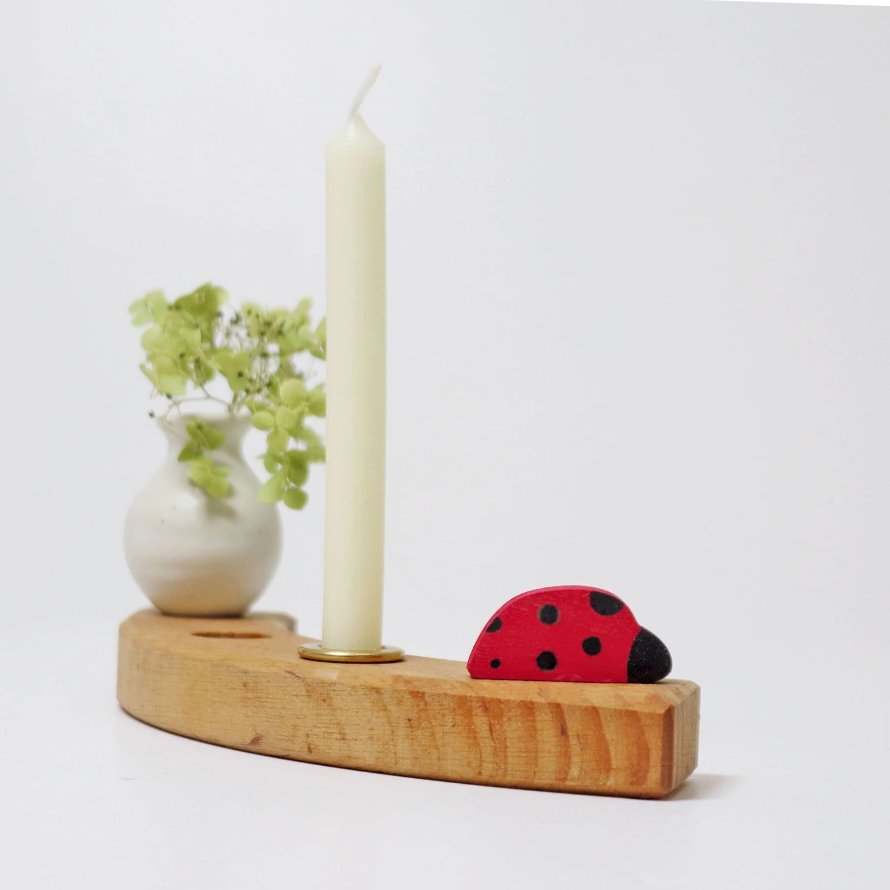 Bonita y delicada figurita de madera mariquita. Se trata de una sencilla decoración para la mesa de estación, decoración de cumpleaños o para llenar de color y vida un rincón especial de la casa.