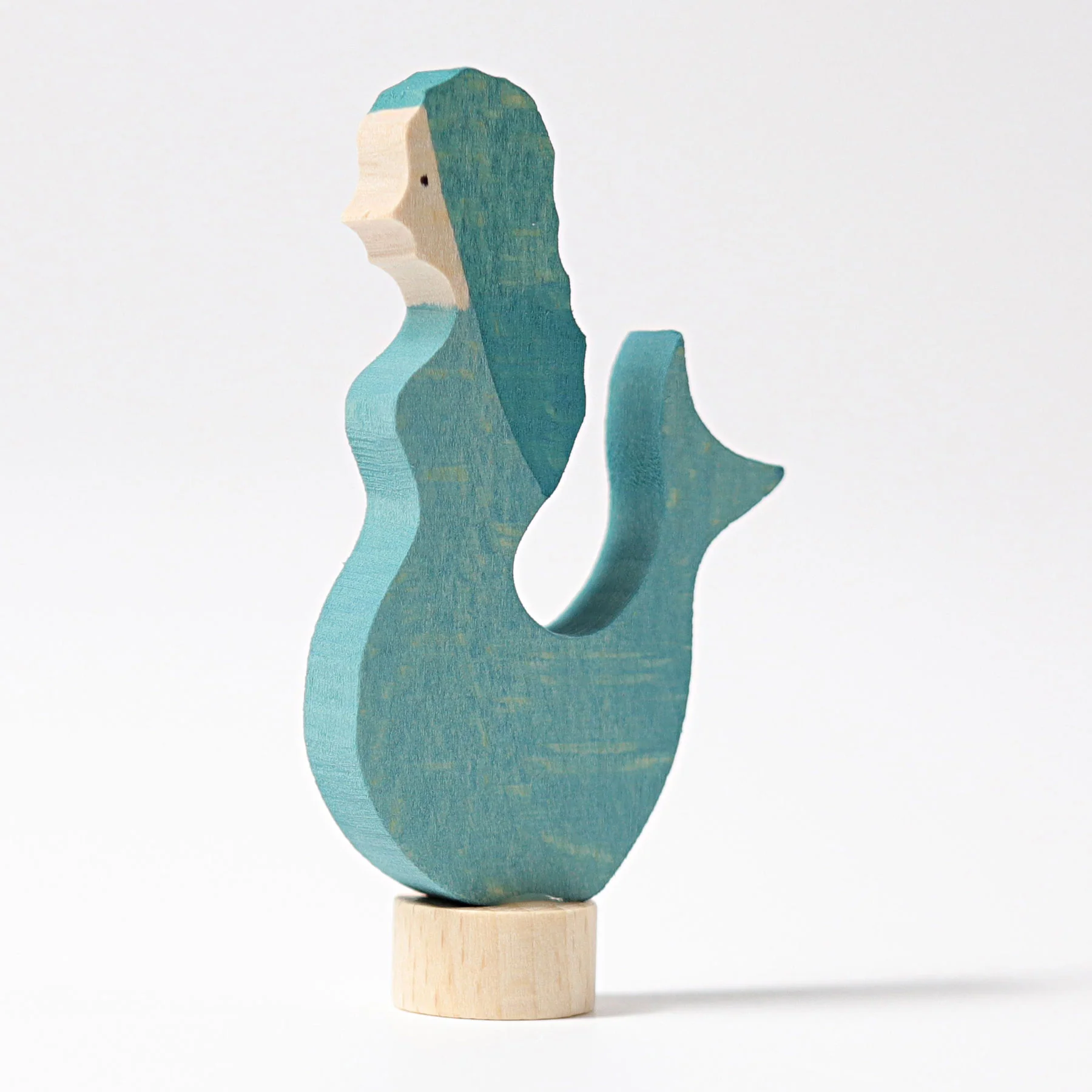 Bonita figurita de madera en forma de sirena, pintada a mano. Se trata de un bonito detalle para la mesa de estación, decoración de cumpleaños o para llenar de color y vida un rincón especial de la casa.