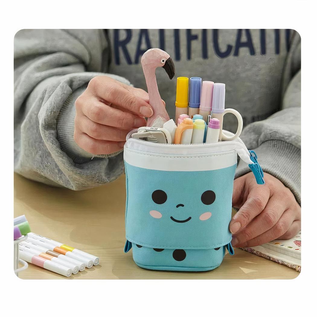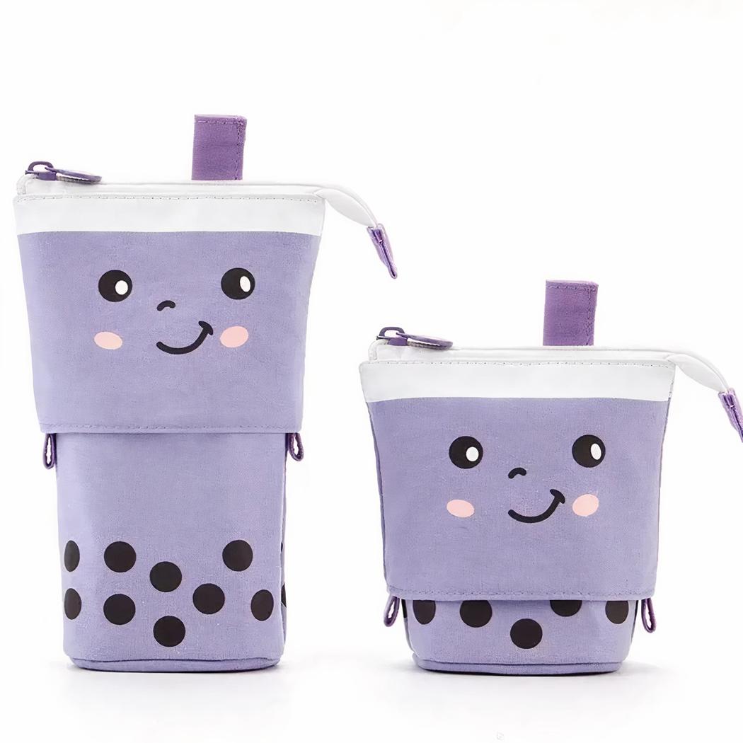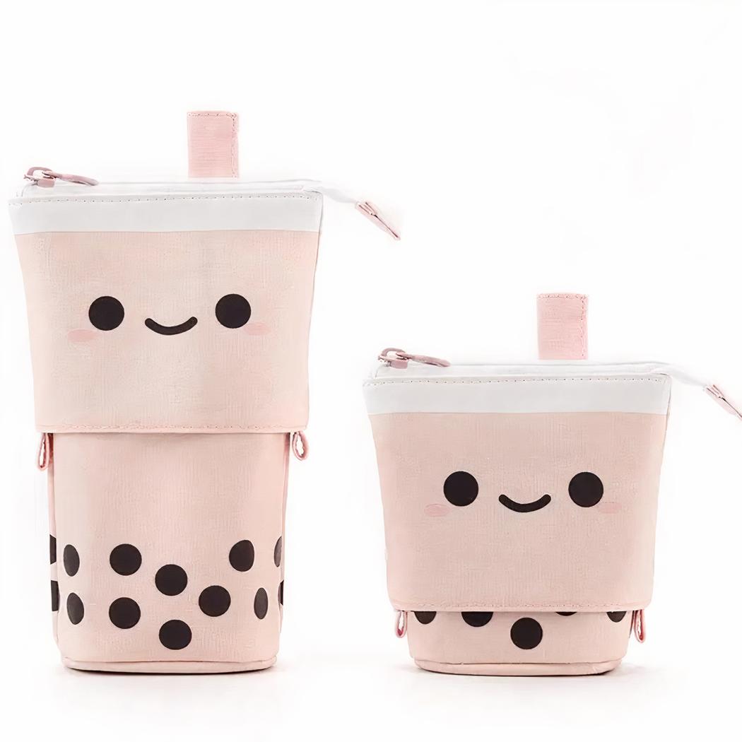 Añada un toque de fantasía a sus artículos de papelería con esta bolsa retráctil con diseño Bubble Tea. Para los fans de la famosa bebida, es un accesorio imprescindible para su bolso. Su diseño retráctil le ofrece una visión más clara del recipiente, facilitando el acceso al accesorio que desee.