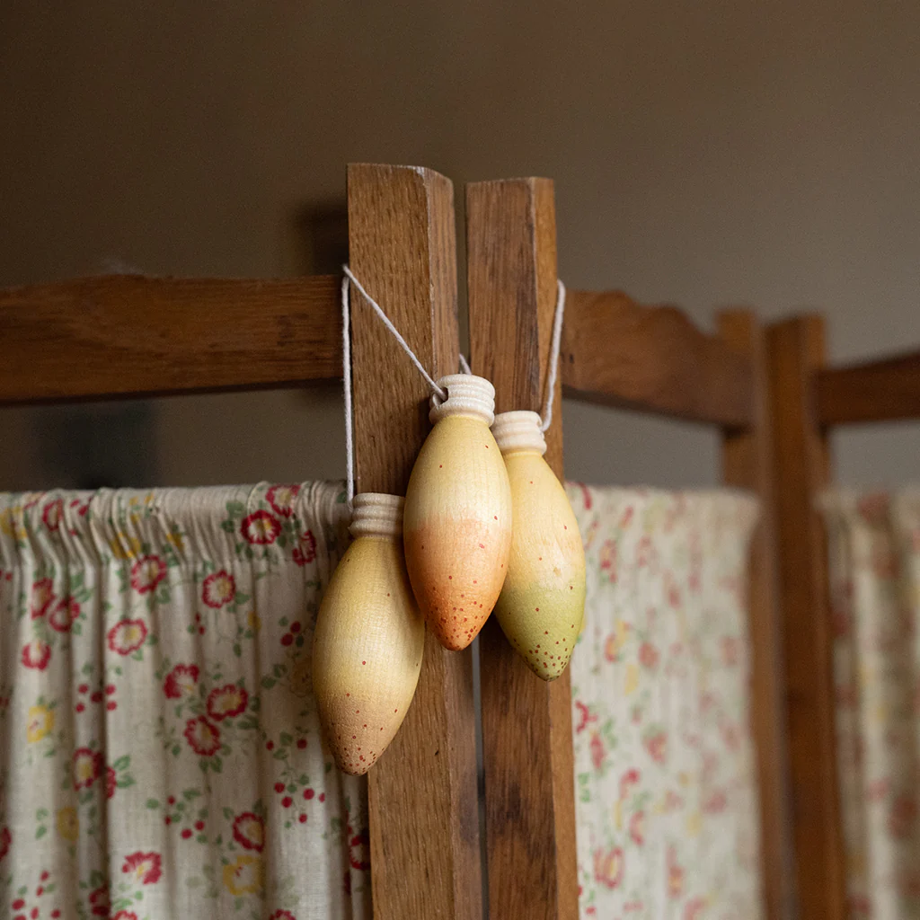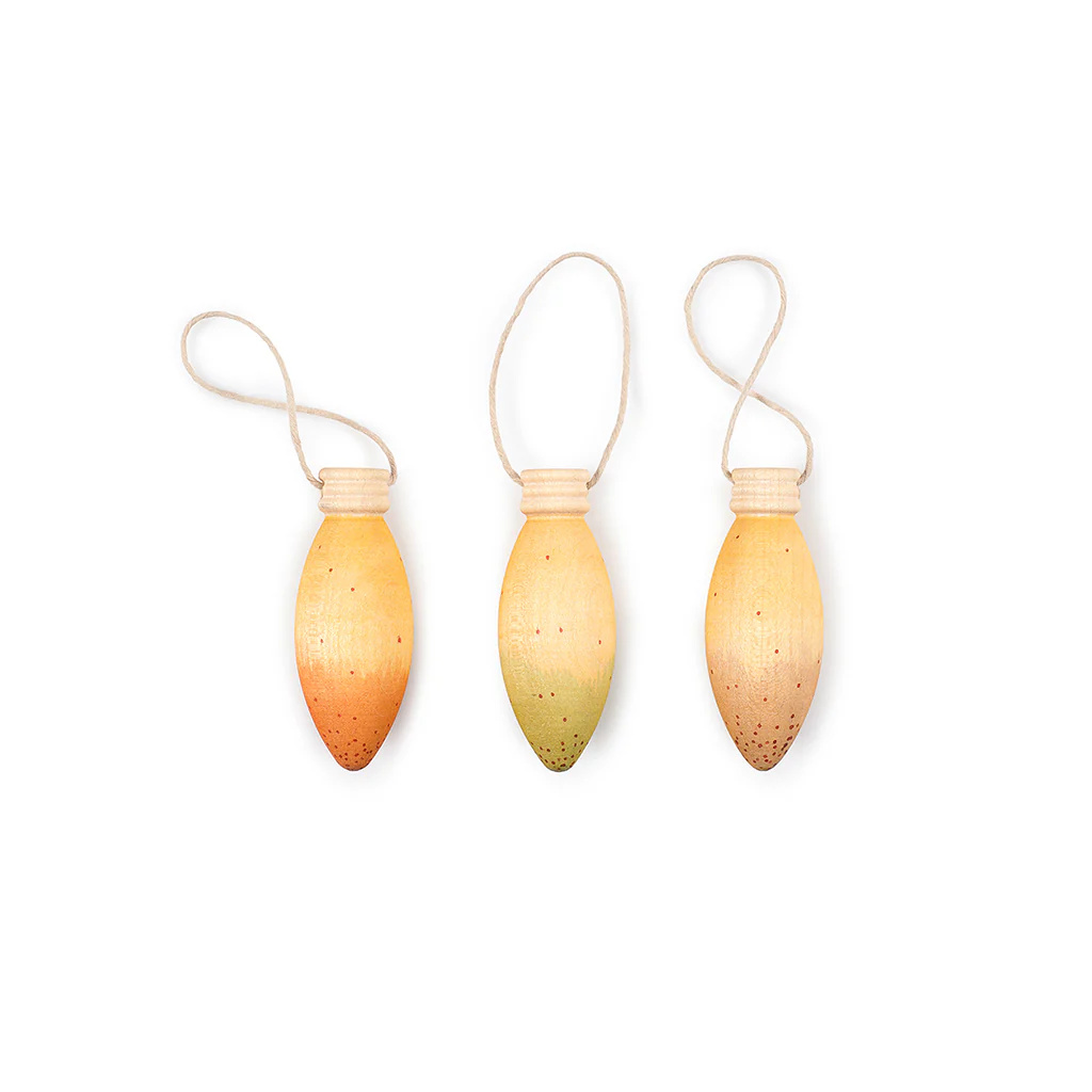 Esta encantadora caja contiene 3 figuras de madera con forma de lámpara. Cada una de las piezas está pintada a mano. ¡Son una maravilla!. Podrás colgarlas en el árbol de Navidad, en una puerta o lugar especial.