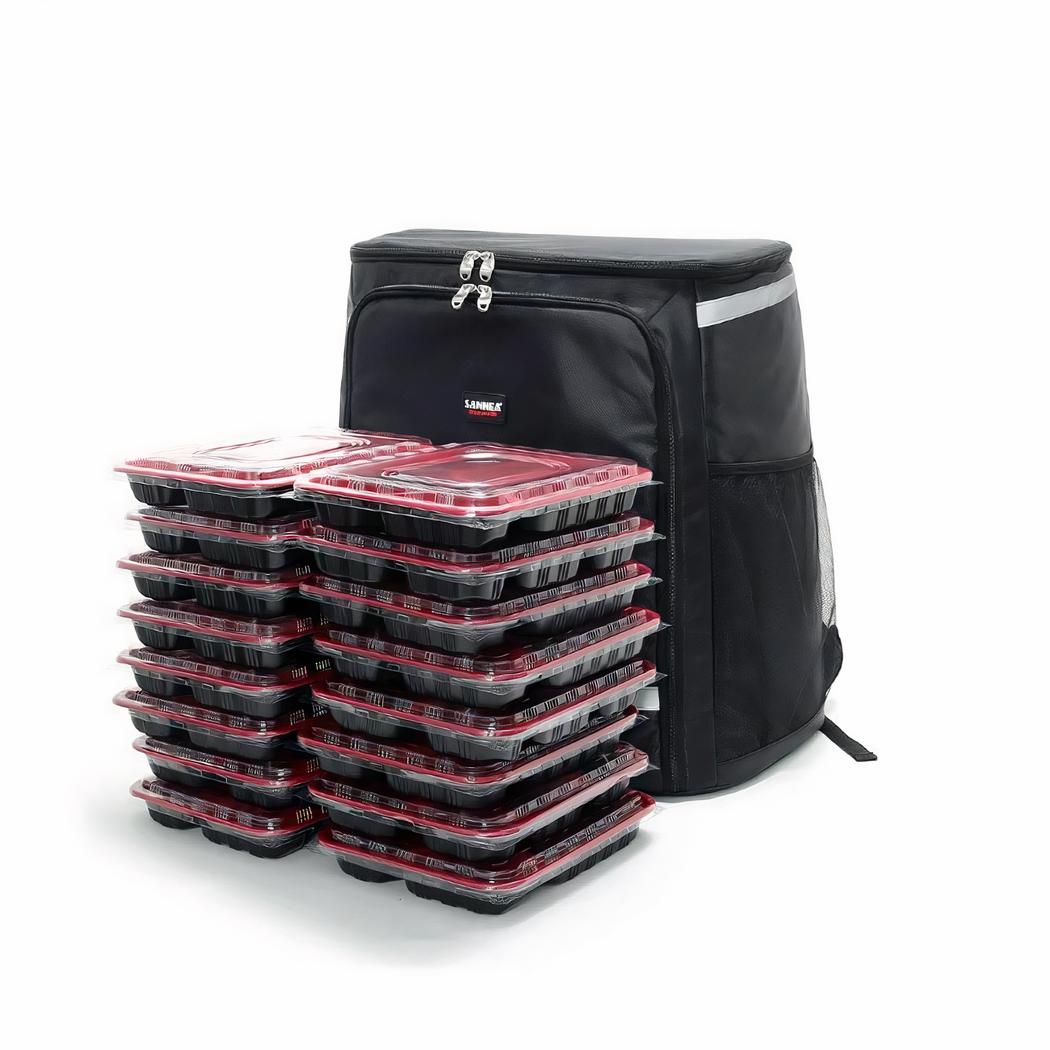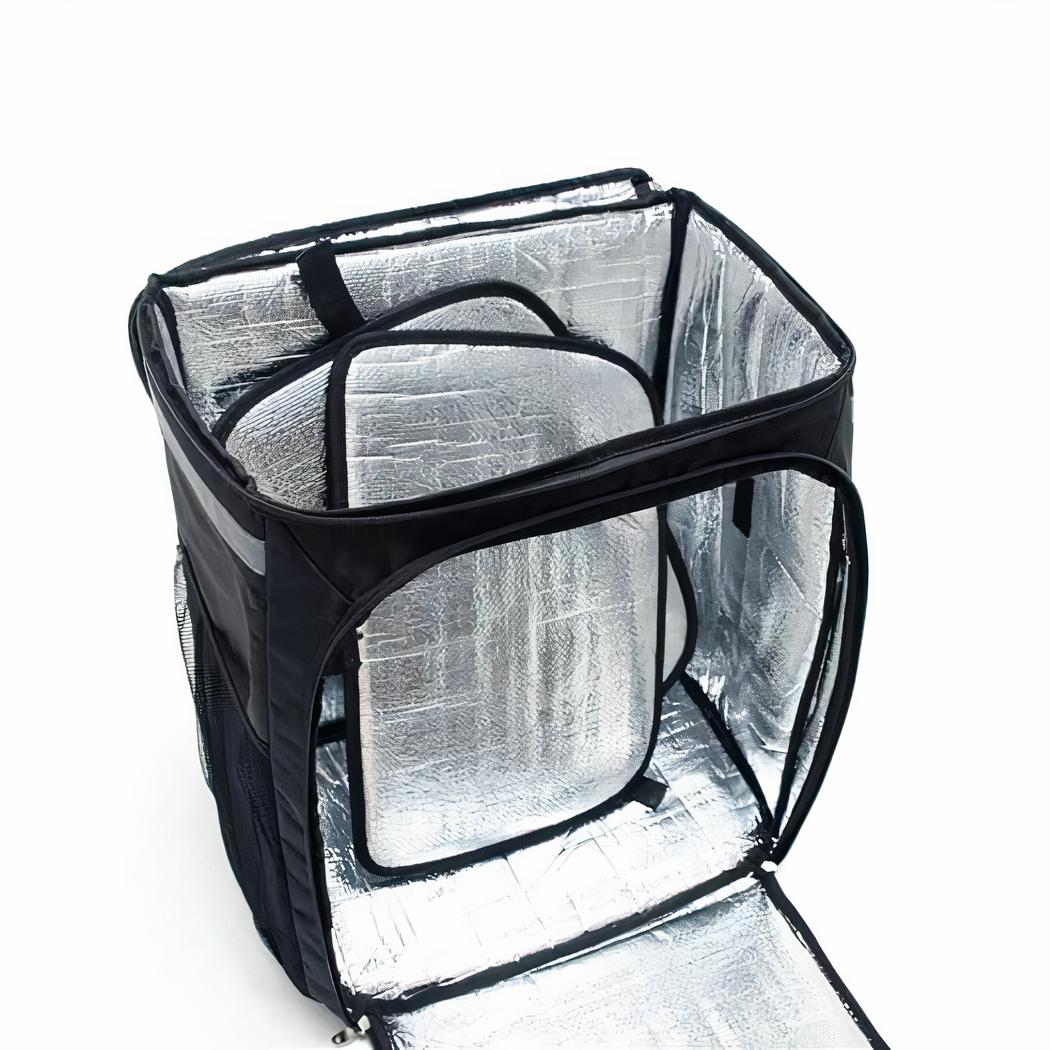 He aquí la solución perfecta para repartir sus pizzas u otros alimentos. Con esta gran mochila isotérmica negra para reparto de comida, su entrega será más fácil y eficaz. Con una capacidad de 57 litros, la bolsa puede transportar una buena cantidad de sabrosa comida.