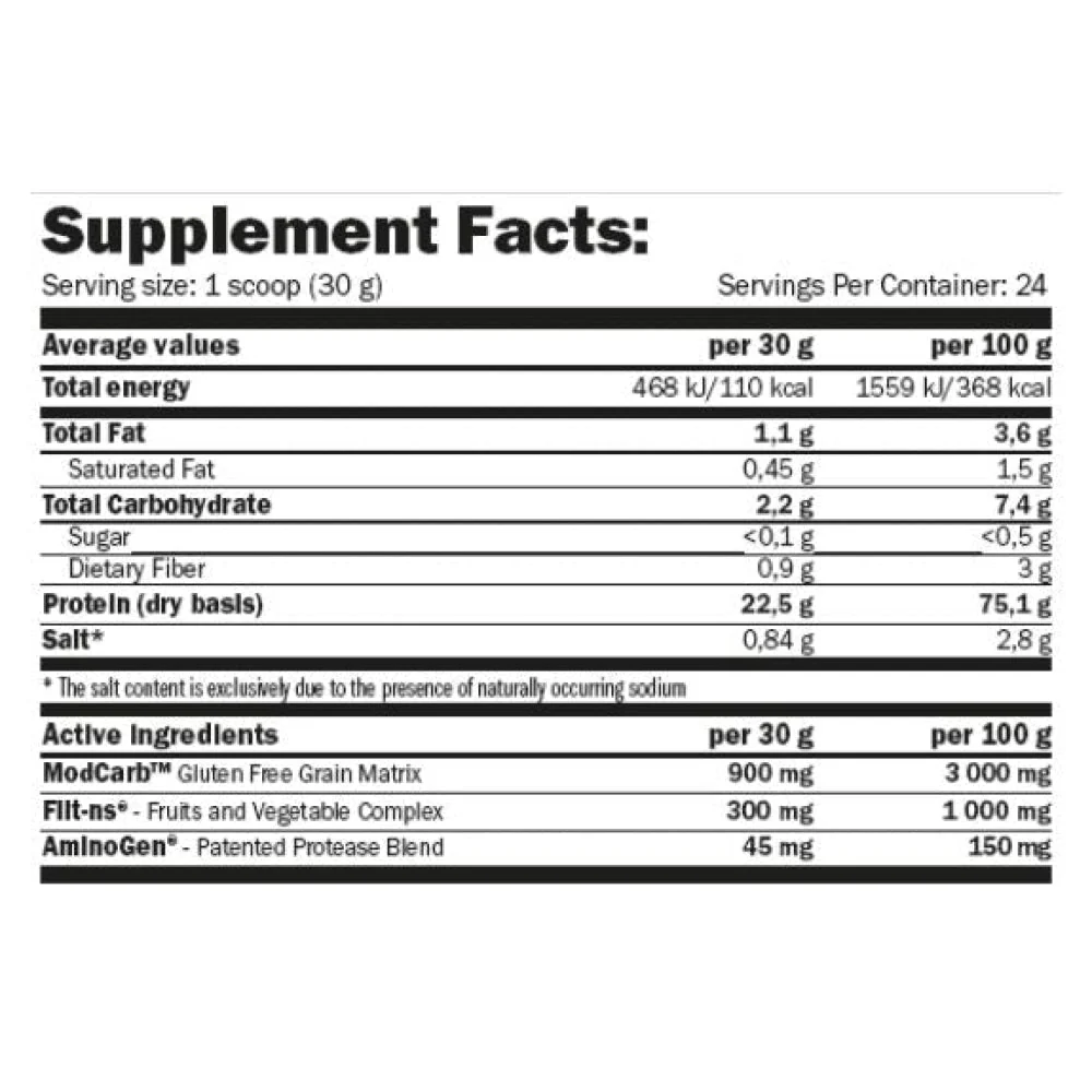 DescripciónGreenDay® VegeFiit Protein de Amix es un suplemento en polvo que contiene una mezcla de proteínas de origen vegetal compuesta por aislado de proteína de guisante Pisane®, proteína de arroz y proteína de soja enriquecida con ModCarb™, una mezcla de 5 carbohidratos de granos saludables y sin gluten AminoGen®, una combinación de enzimas de origen vegetal y Fiit-ns®, una combinación patentada de extractos naturales con propiedades antioxidantes.GreenDay® Vegefiit Protein es la solución definitiva para todas aquellas personas que buscan una proteína de alta calidad y que sea 100% de origen vegetal.GreenDay® Vegefiit Protein te proporciona un 75% de proteínas de origen vegetal, sin modificaciones genéticas, sin gluten y sin lácteos. Por fin tienes a tu alcance una fuente de proteínas alternativa, de alta calidad y altamente saludable.Beneficios Principales beneficios de GreenDay® VegeFiit Protein de Amix: – Una fuente de proteínas alternativa, de alta calidad y altamente saludable. – Contiene una mezcla de proteínas de alta calidad y que sea 100% de origen vegetal. – Combina aislado de proteína de guisante Pisane®, proteína de arroz y proteína de soja. – Enriquecida con ModCarb™, una mezcla de 5 carbohidratos de granos saludables y sin gluten. – Con AminoGen®, una combinación de enzimas de origen vegetal. – Con Fiit-ns®, una mezcla patentada de extractos naturales con propiedades antioxidantes.IngredientesMezcla proteica vegetal 87% (aislado de proteína de guisante Pisane®, proteína de arroz, proteína de soja) cacao en polvo, ModCarb™ (salvado de avena sin gluten, quinoa, amaranto, alforfón, mijo), extractos y concentrados de frutas y hortalizas Fiit-ns® (extracto de té verde, extracto de guaraná, extractos de uva roja y blanca, extracto de pomelo, extracto de zanahoria negra, nicotinamida), aroma, mezcla patentada de proteasa AminoGen® (maltodextrina, proteasas), edulcorantes: glicósidos de esteviol, sucralosa y acesulfamo-K. Advertencia de alérgenos: Puede contener trazas de leche, huevos, gluten, marisco, nueces y cacahuetes debido a los métodos de fabricación.Modo de empleoComo suplemento dietético para adultos sanos, mezclar un servicio de 30 gramos (1 dosificador raso) con 250 ml de agua en una batidora manual o eléctrica y agitar durante 30 segundos y tomar entre las comidas principales. PresentaciónEnvase de 720 gramos.LegalInformación General de Seguridad de Productos UEMarca: Amix Nutrition Nombre del Fabricante: LargeLife Ltd. País del Fabricante: United Kingdom Dirección Postal del Fabricante: Enterprise House, 2 Pass Street, Oldham, Manchester, OL9 6HZ Correo Electrónico del Fabricante: [email protected] Teléfono del Fabricante: +44123456789 Persona Responsable en la UE: Amix Levante, S.L. Dirección Postal del Representante en la UE: Calle Irlanda, 12, Polígono Industrial Las Maromas, Almoradí, Alicante Correo Electrónico del Representante en la UE: [email protected] de Seguridad: – Mantener fuera del alcance de los niños. – No exceder la dosis diaria recomendada. – Consultar con un profesional de la salud antes de usar si está embarazada, amamantando, tomando medicación o tiene alguna condición médica. – Este producto no está destinado a diagnosticar, tratar, curar o prevenir ninguna enfermedad. – Puede contener trazas de gluten, soja, leche, huevos, pescado, crustáceos, frutos secos y cacahuetes.