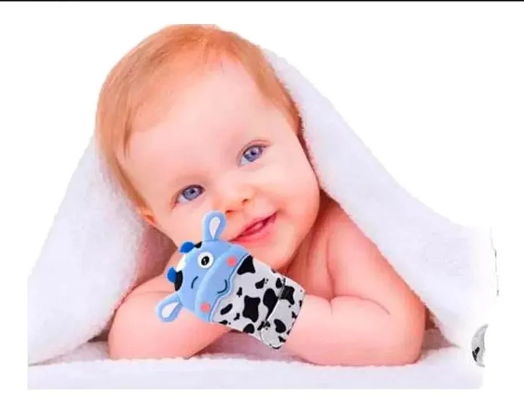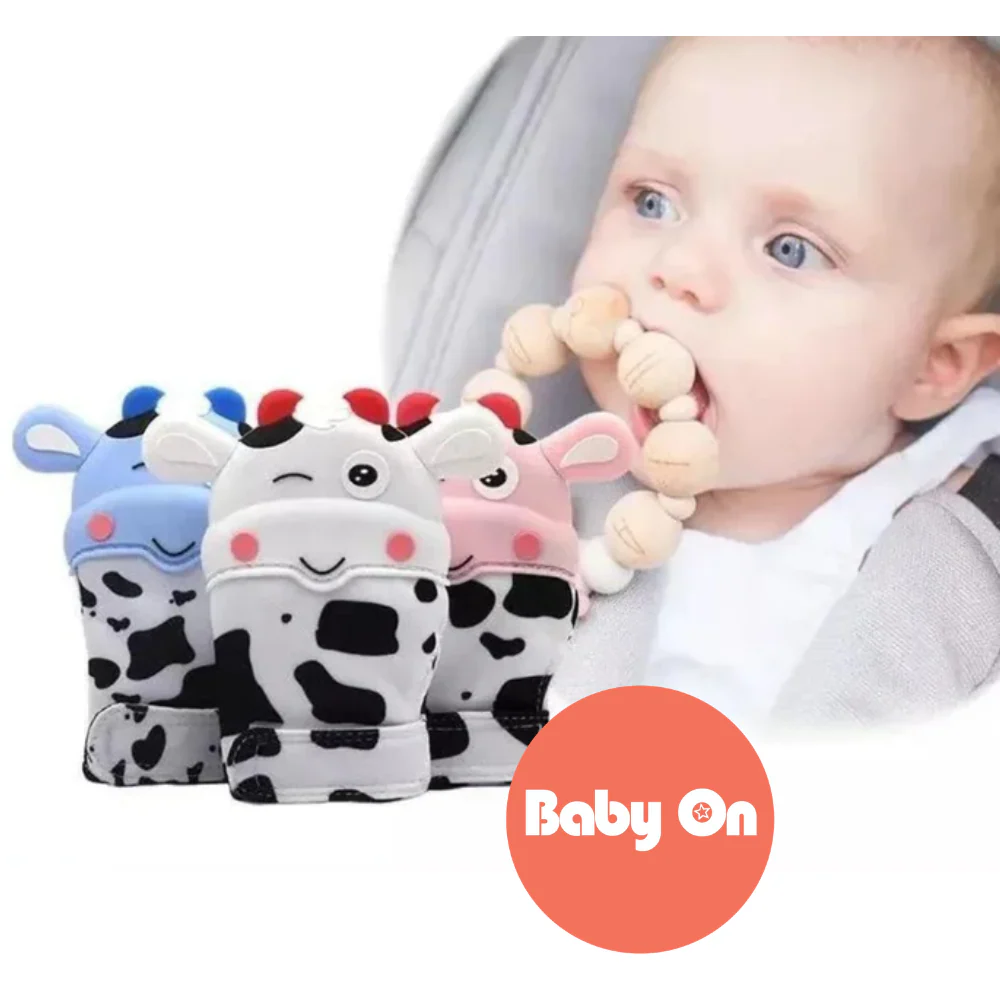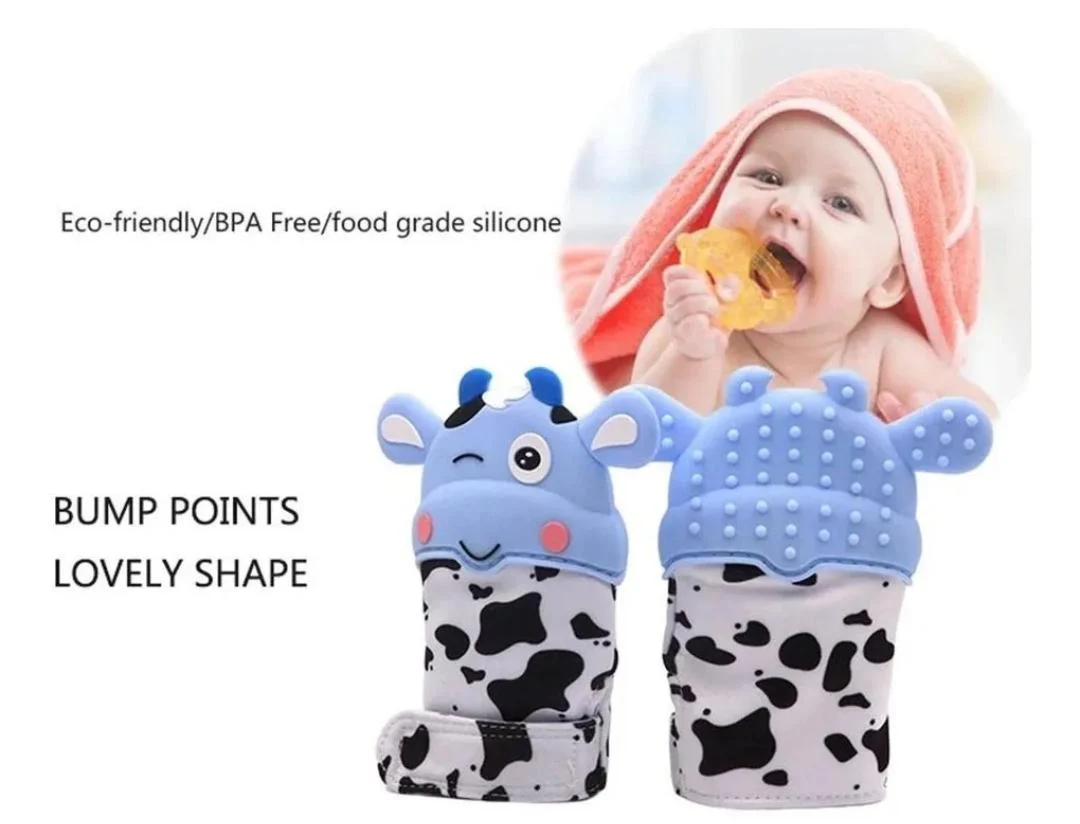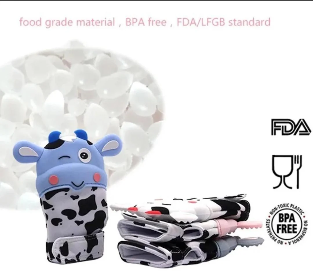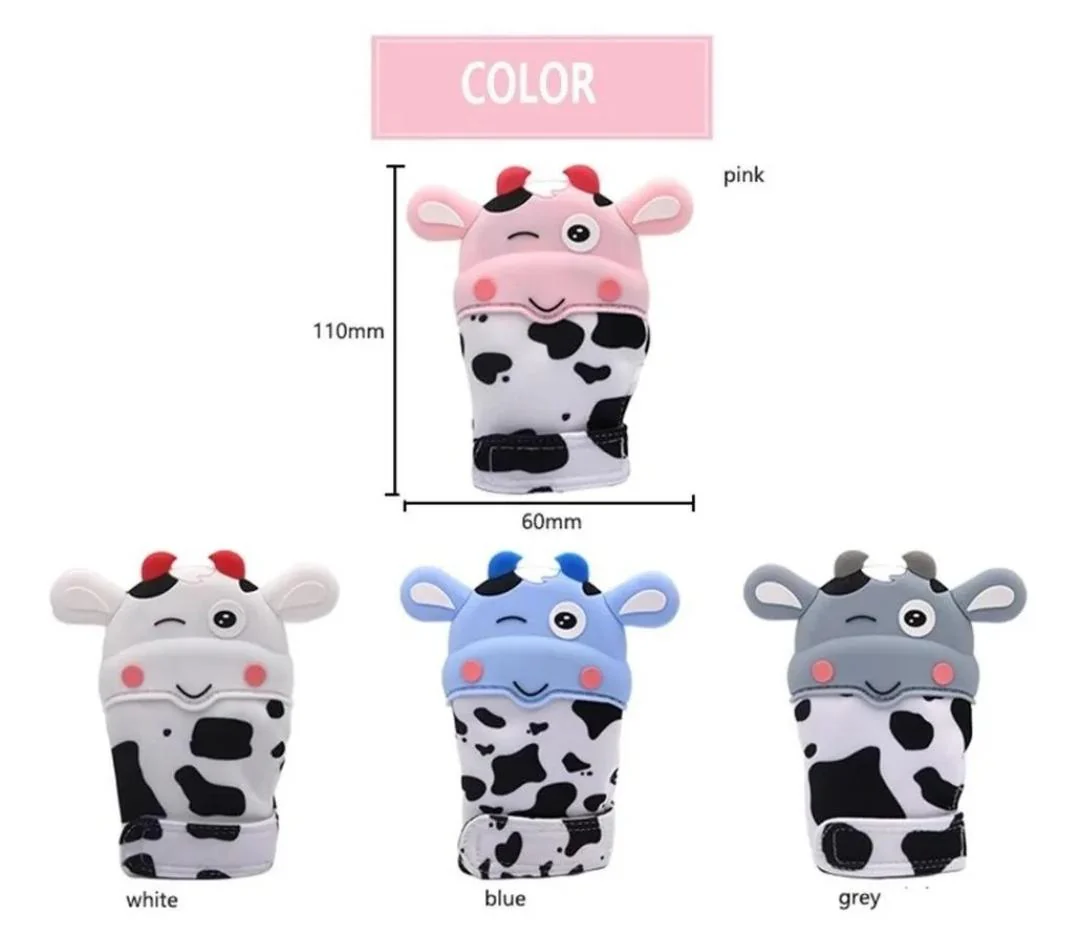Protege las delicadas manos de tu bebé con este adorable guante mordedor en forma de vaca. Diseñado para aliviar las molestias del crecimiento dental, está fabricado con silicona de grado alimenticio, libre de BPA y materiales tóxicos.