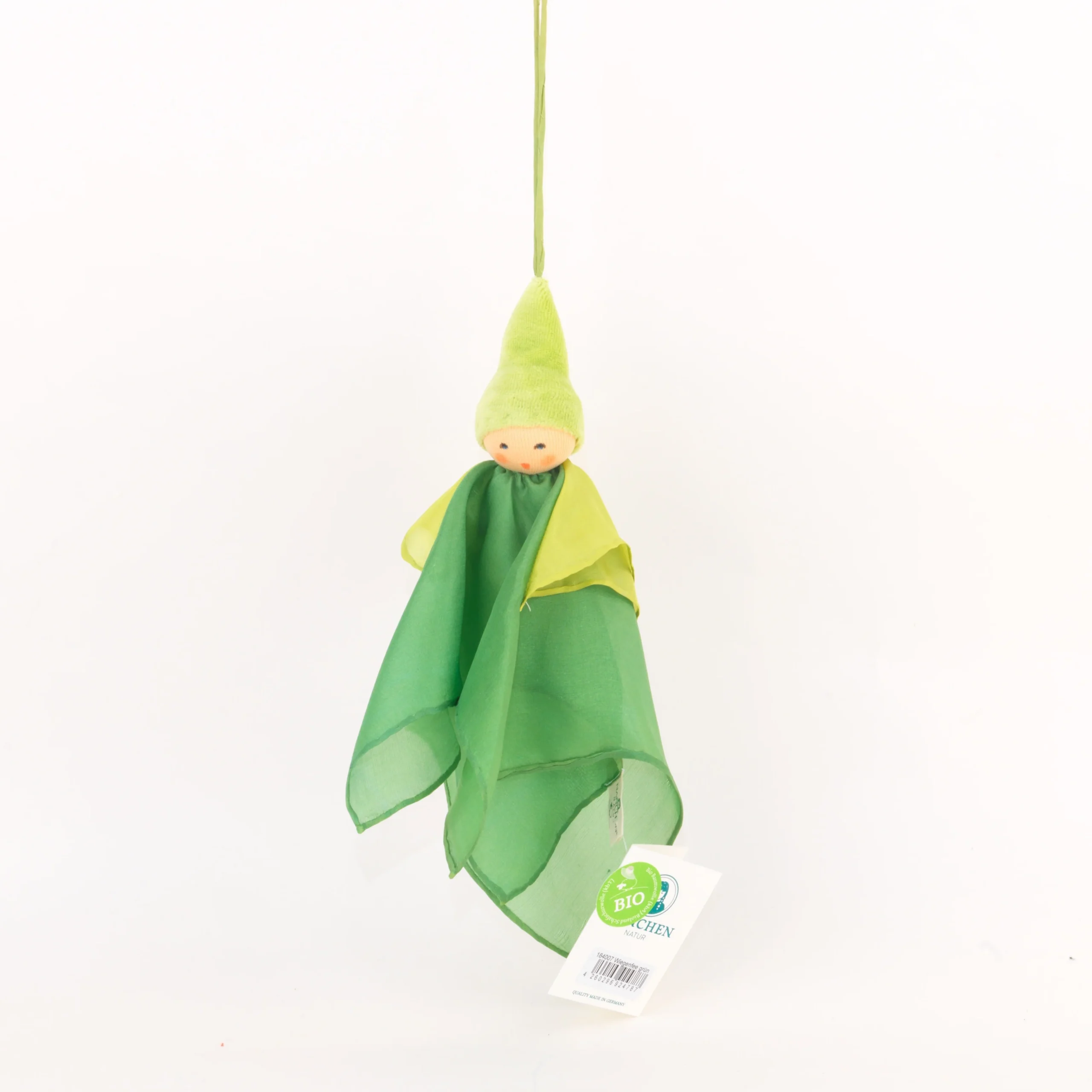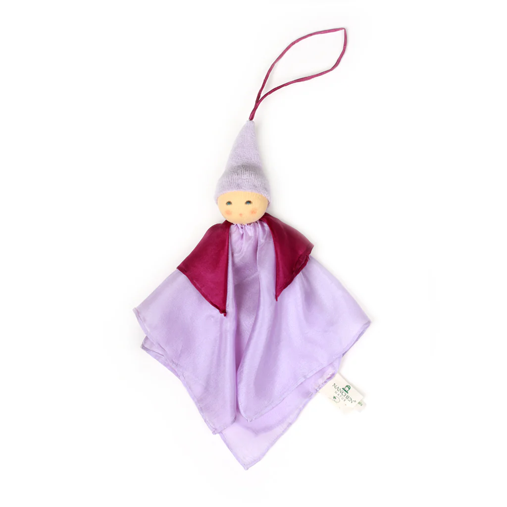 En concreto, estas muñequitas llevan una fina capa de seda muy suave, disponible en tres modelos de diferentes tonos: rosas, violetas y verdes. El cuerpo es de suave algodón de cultivo ecológico y el relleno de pura lana virgen de oveja.