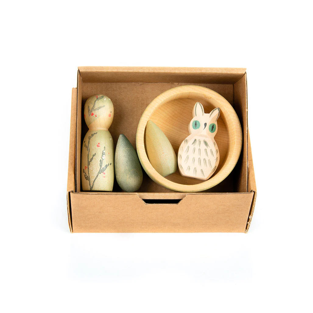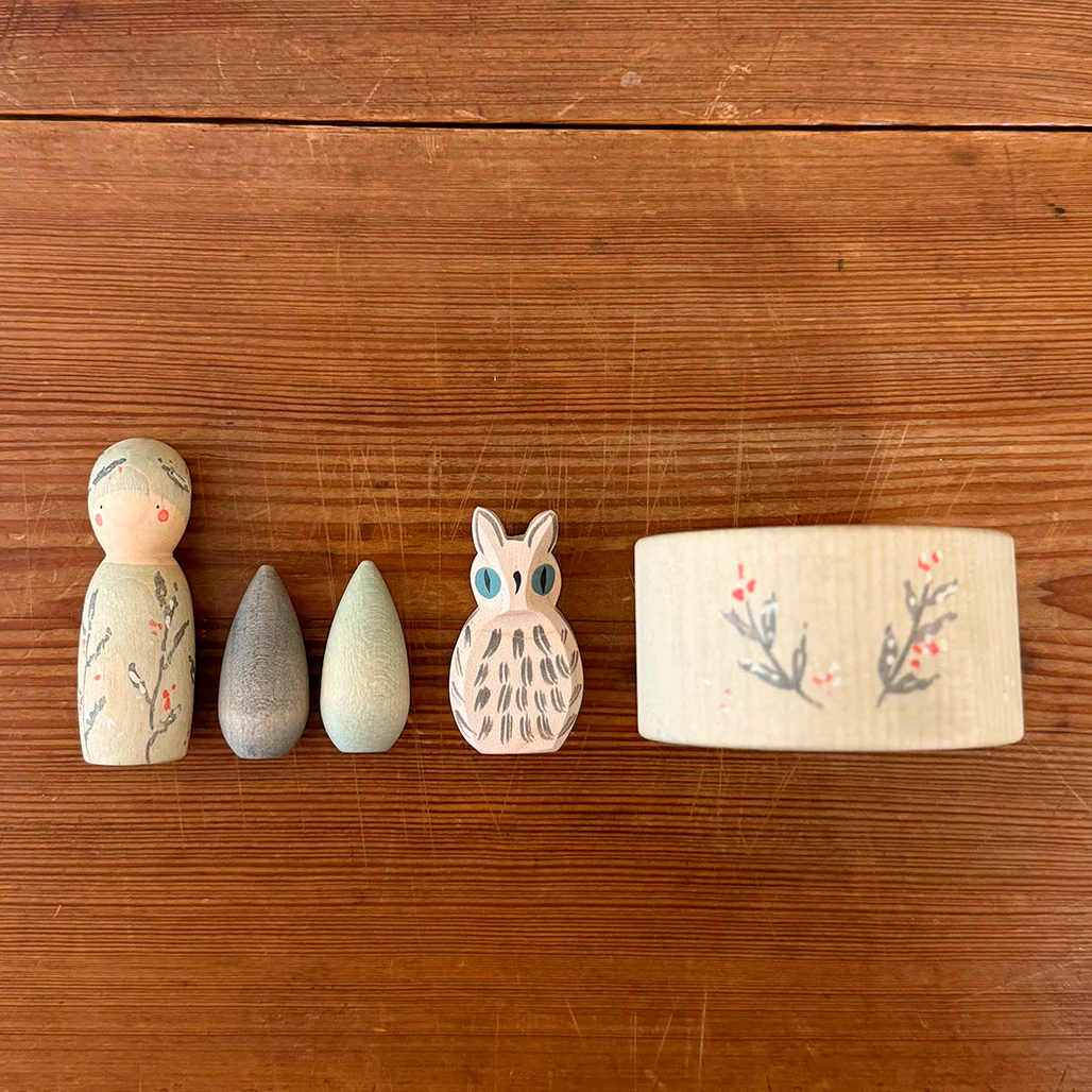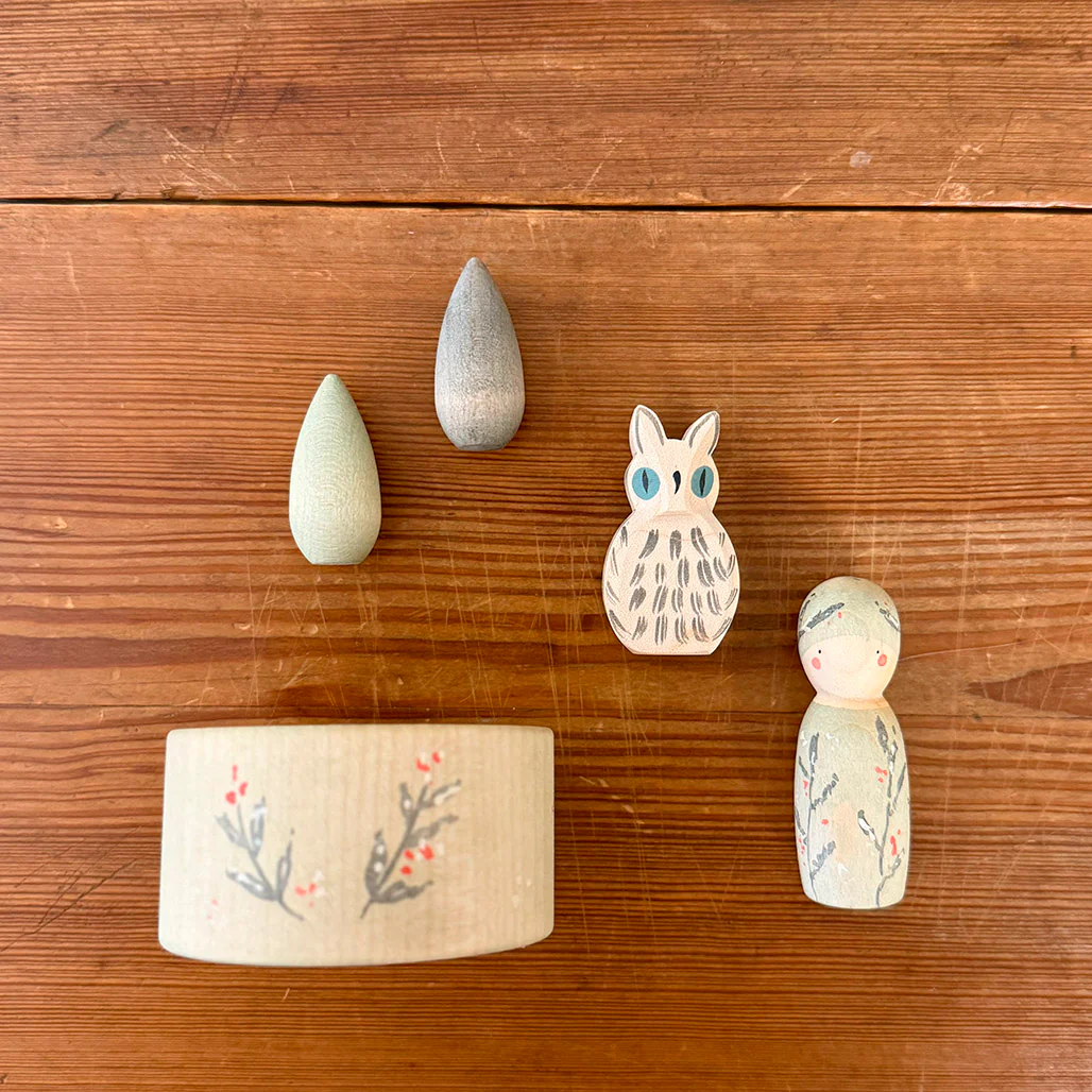 Cada pieza está pintada a mano y transmite la calma, la belleza y el misterio de esta estación. Es una invitación a observar, jugar con sosiego y crear desde el silencio.
