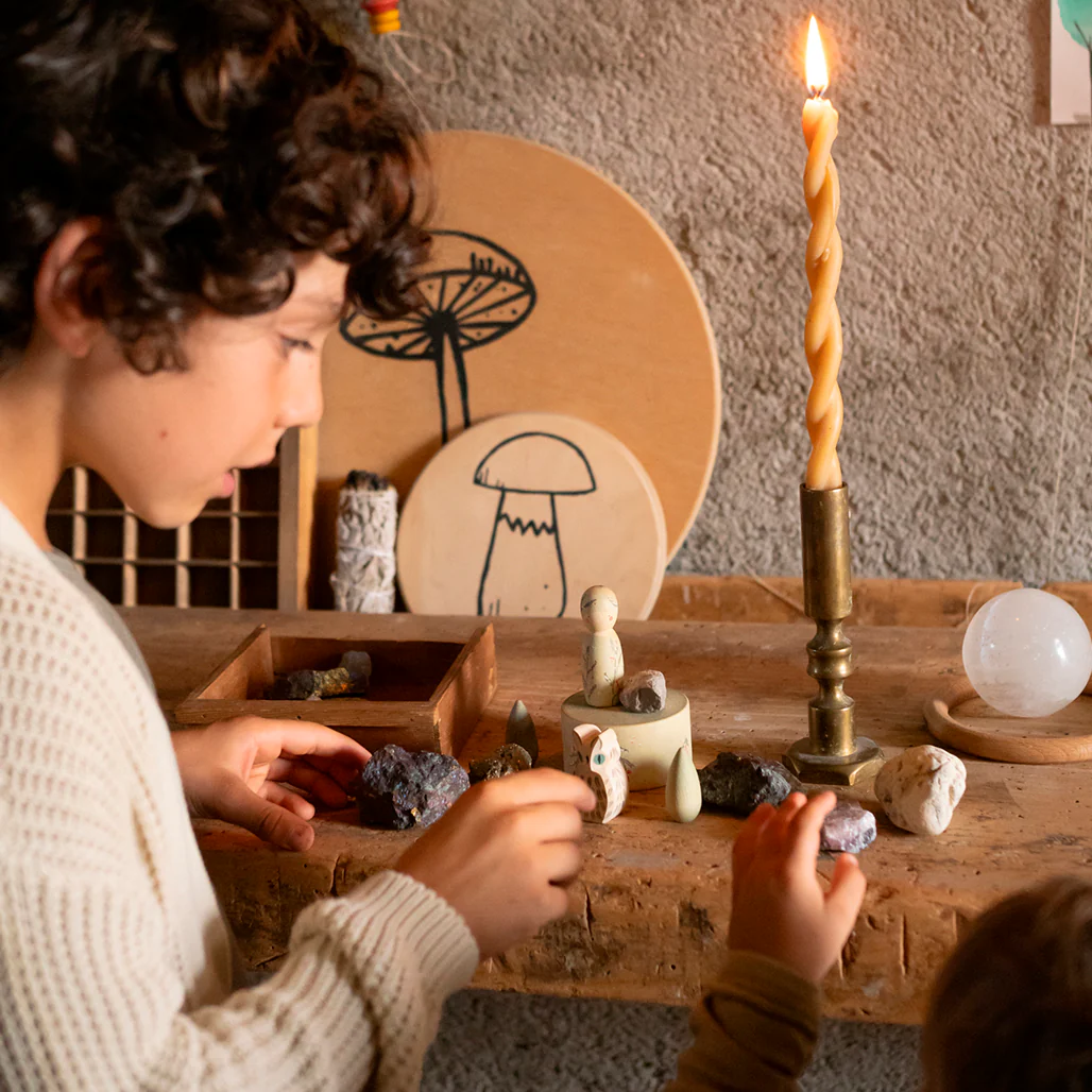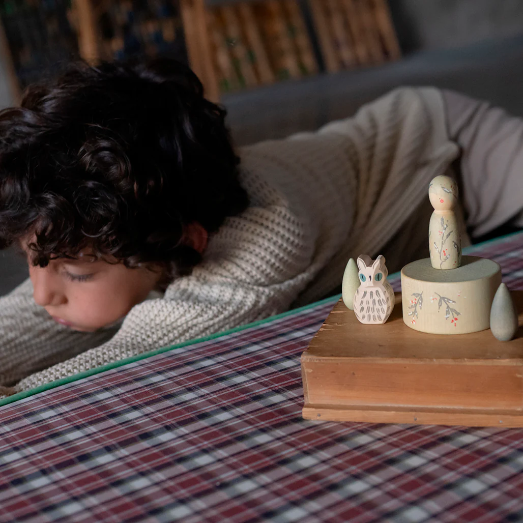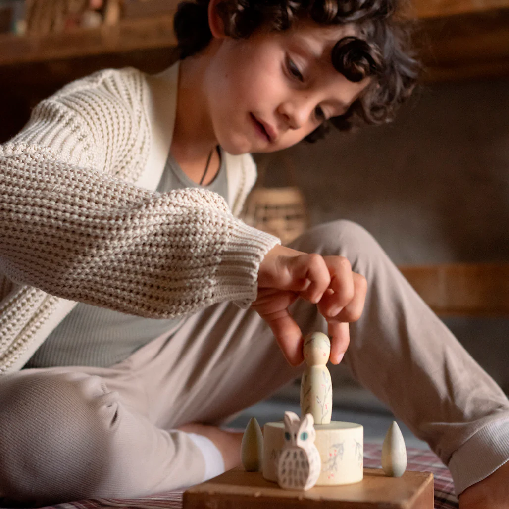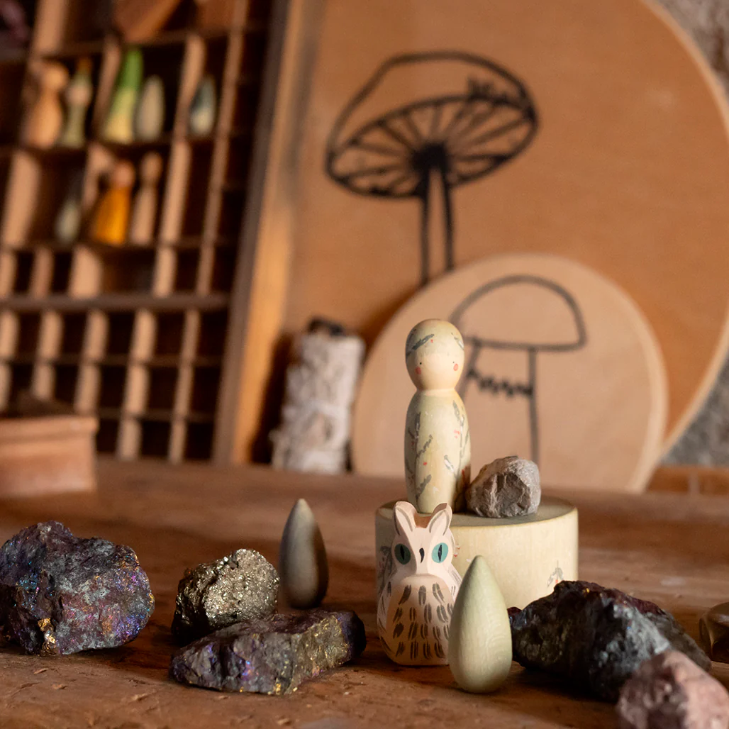 Cada pieza está pintada a mano y transmite la calma, la belleza y el misterio de esta estación. Es una invitación a observar, jugar con sosiego y crear desde el silencio.