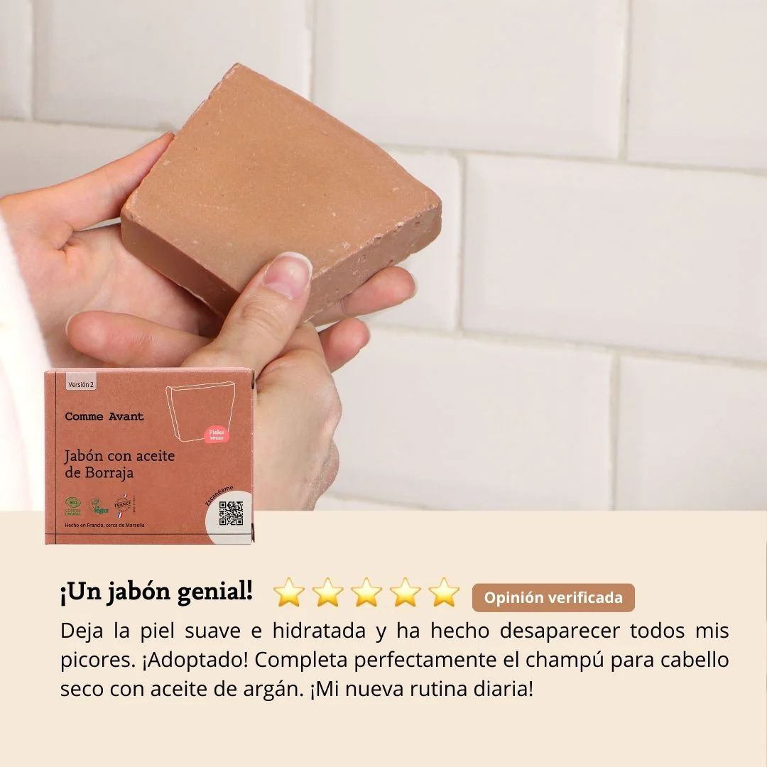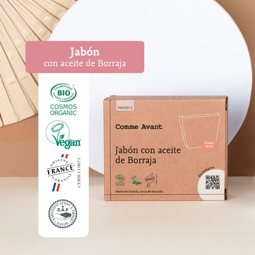 Nuestro jabón saponificado en frío está elaborado con aceite de borraja, ideal para el cuidado diario de las pieles maduras y secas. Fabricado en nuestro taller cerca de Marsella. Nuestro jabón con aceite de borraja francés está saponificado en frío y elaborado artesanalmente en nuestro propio taller en Francia, cerca de Marsella.