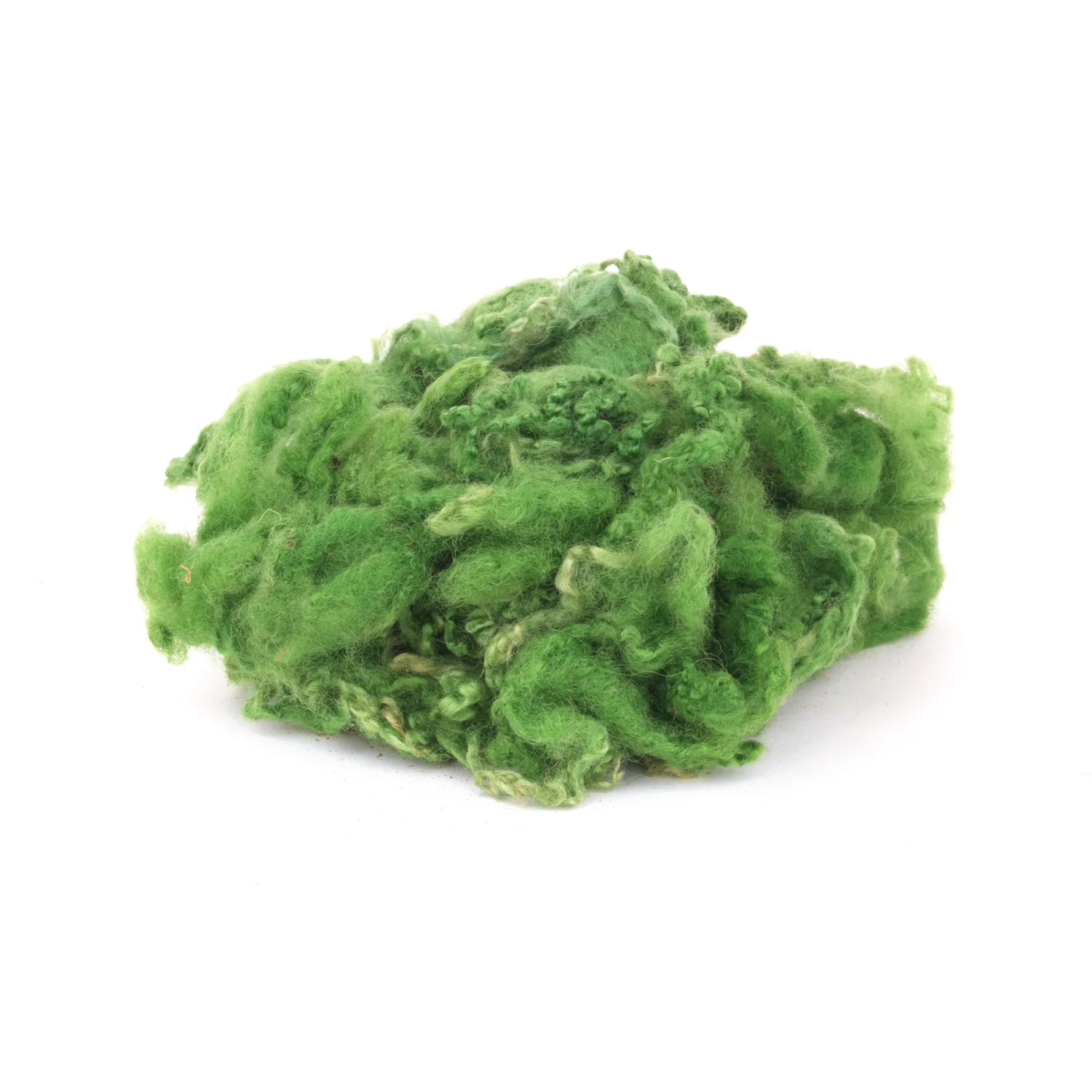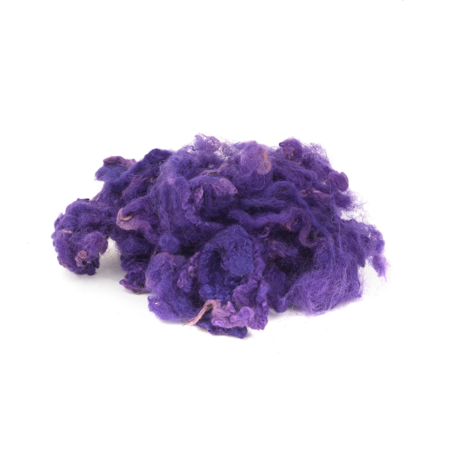 Lana cardada rizada teñida libre de sustancias nocivas en 5 colores diferentes para crear las barbas y cabellos de los gnomos, duendes y demás muñecos.