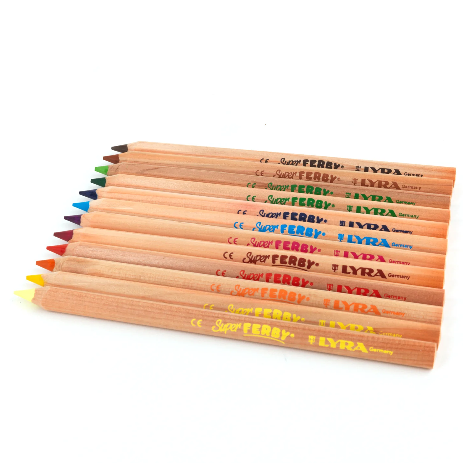 Lápices de madera «Super Ferby» de extraordinaria calidad de la marca alemana Lyra. Preciosos colores adaptados a la Teoría del Color de Goethe. Con estos lápices se trabajan tanto superficies amplias como los detalles y están especialmente indicados para trabajos artísticos. La forma triangular hace que también los más pequeños puedan utilizarlos cómodamente.