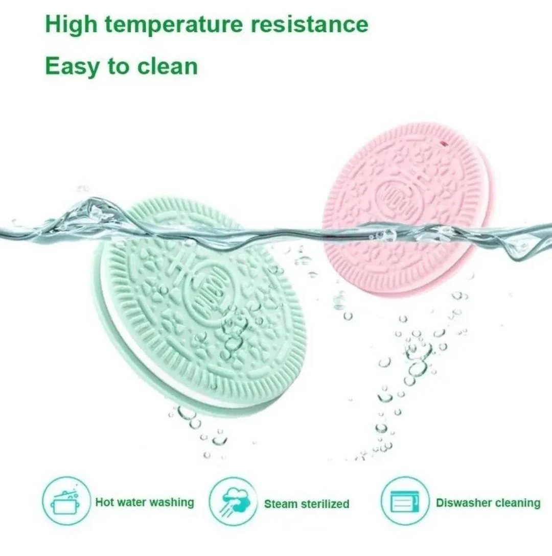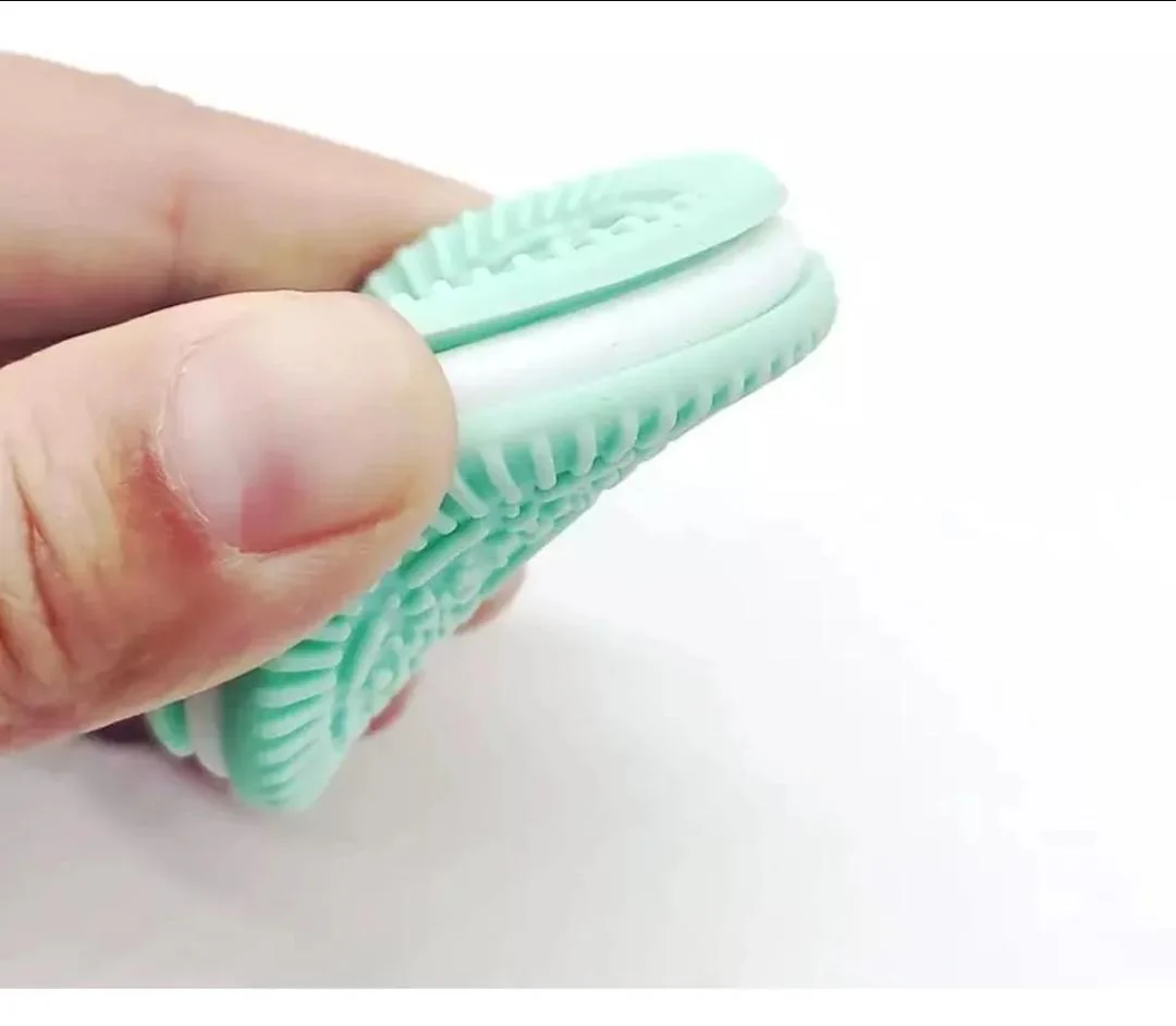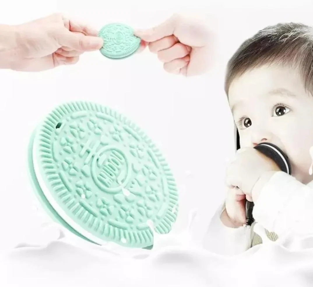 Llamadientes mordedor diseño galleta oreo con sujetador