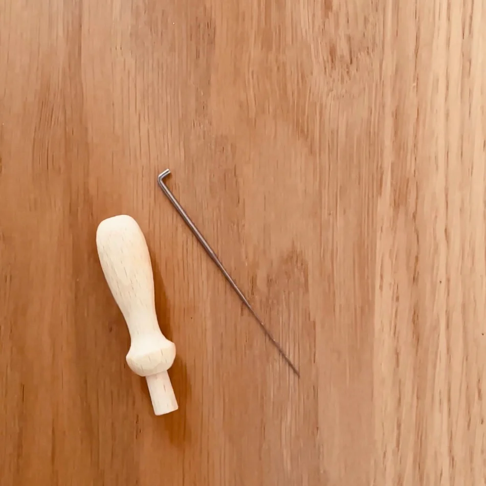 Cómoda empuñadura de madera para las agujas de afieltrado. Facilitan el agarre de las agujas para el afieltrado en seco. Este modelo dispone de un agujero para introducir una aguja. El soporte de un agujero es adecuado para el aprendizaje y para detalles finos.