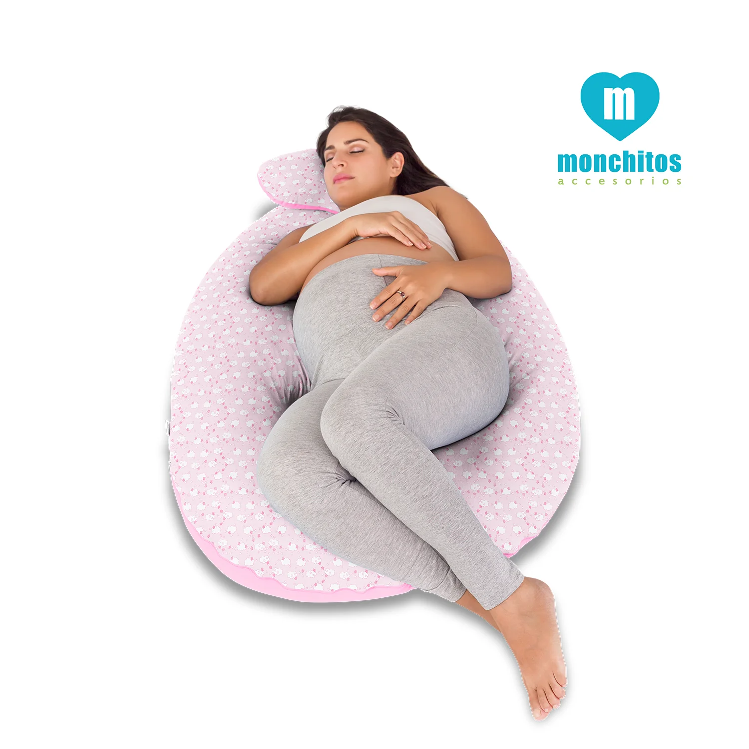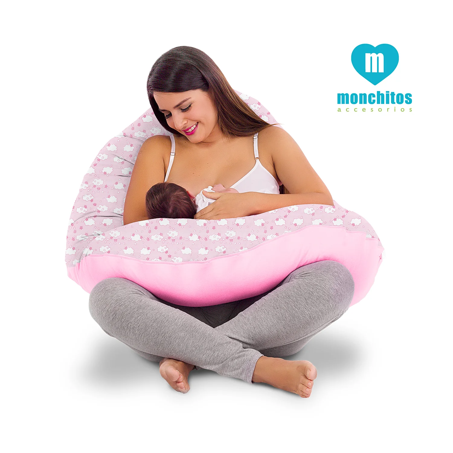 El Mega Almohadón de Monchitos Accesorios, rosado bebé nubes, es un cojín creado para hacer más confortable el momento de la Lactancia. Su diseño multifuncional te permite usarlo antes y después del nacimiento del bebé, brindándote comodidad, seguridad y un saludable soporte; tanto para ti como para él, gracias a su gran tamaño, suaves materiales y su versatilidad.