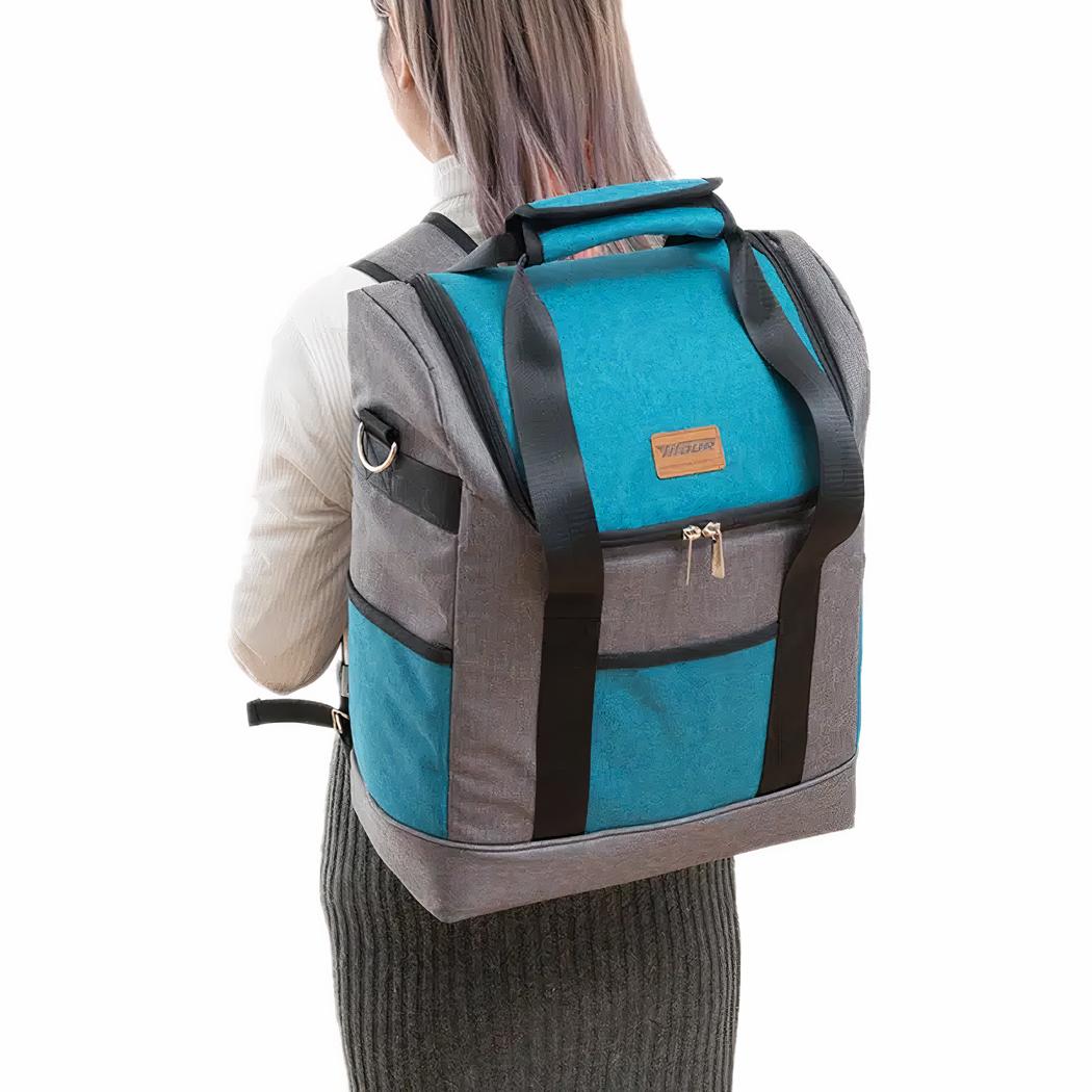 Tanto si está de viaje como de picnic, guardar sus provisiones será más fácil con esta mochila isotérmica extragrande. Ponga en ella sus alimentos y bebidas. Esta bonita bolsa isotérmica los mantendrá frescos. Esta mochila isotérmica azul extragrande es perfecta para excursiones largas.
